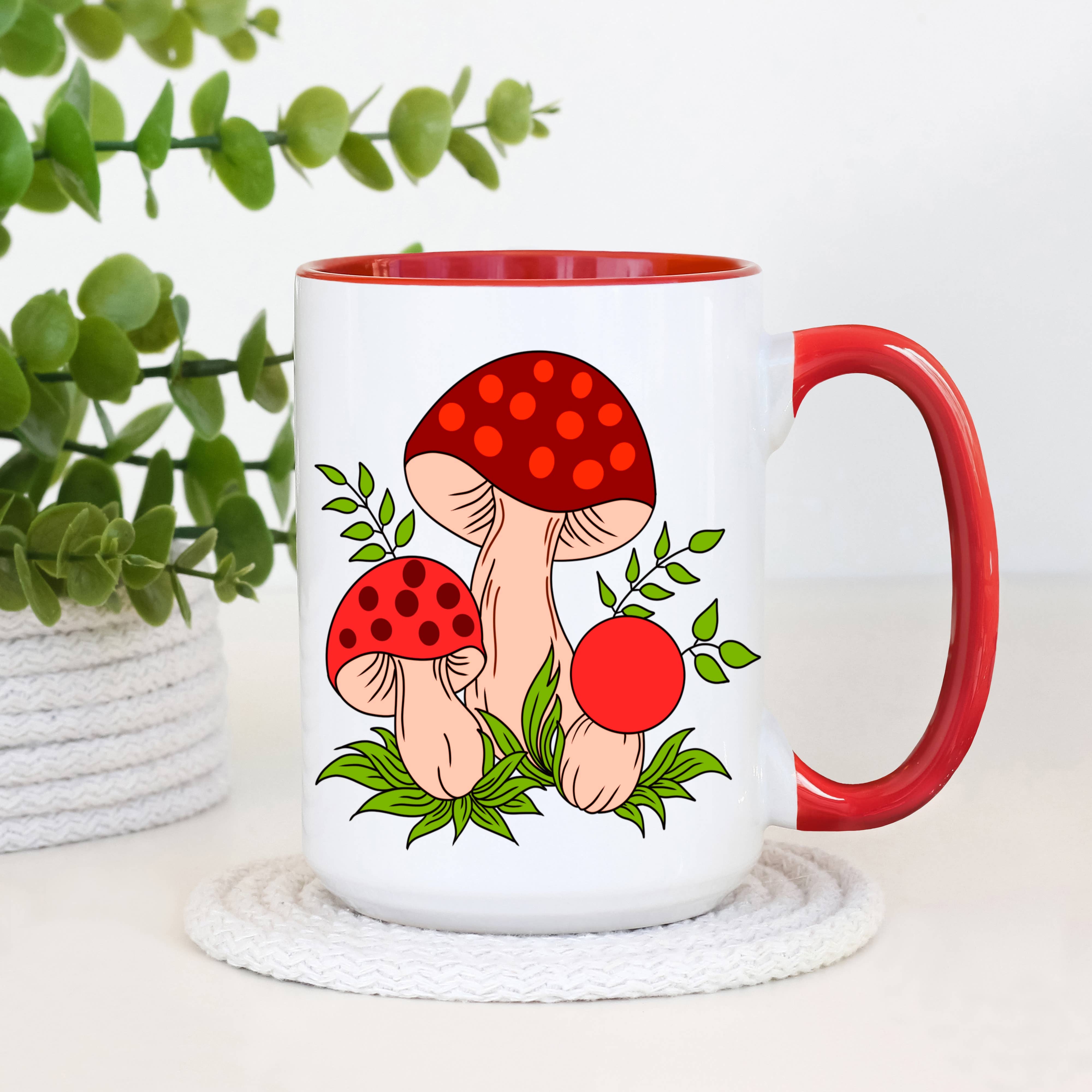 Vintage koffiemok met champignons