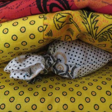 We hebben net onze oogkussens en tasjes ontvangen. Ze zijn zo mooi.