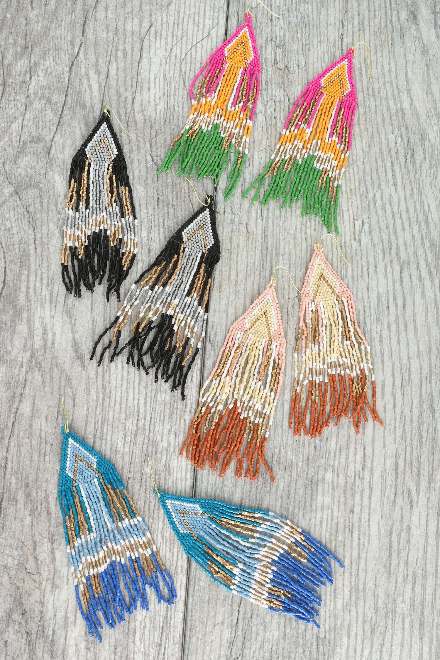 INDIAANS DIAMANTONTWERP, DRIEHOEKIGE KWASTJE MET KRALEN EN LANGE DRUPPELVORMIGE VISHAAKORBELLEN HOOGTE: 5,25 BREEDTE: 1,3 GOUDEN KRALEN MET GOUDEN ACCENT DIAMANTONTWERP DRIEHOEK TAPS TOELOPEND HANDGEMAAKTE HANDGEMAAKTE ROCAALKWASTJE FRANJE KRALEN WATERVAL CASCADE LANGE DRUPPEL ETNISCHE TRIBALE BOHO BOHEMIEN NAVAJO INDIAANSE HANDGEMAAKTE BENGELENDE DRUPPELVISHAAKOORBELLEN