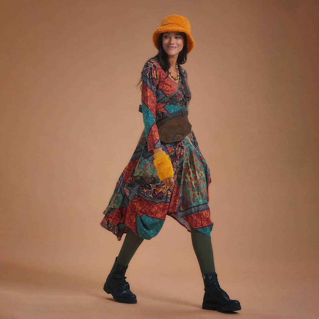 Boothals, lange mouwen, winter, lange jurk, jurk met patroon