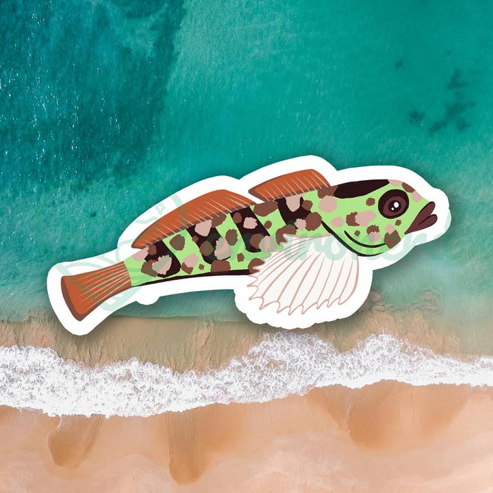 Waterdichte, matte sticker met originele kunst. Meet 3 cm aan de langste rand.