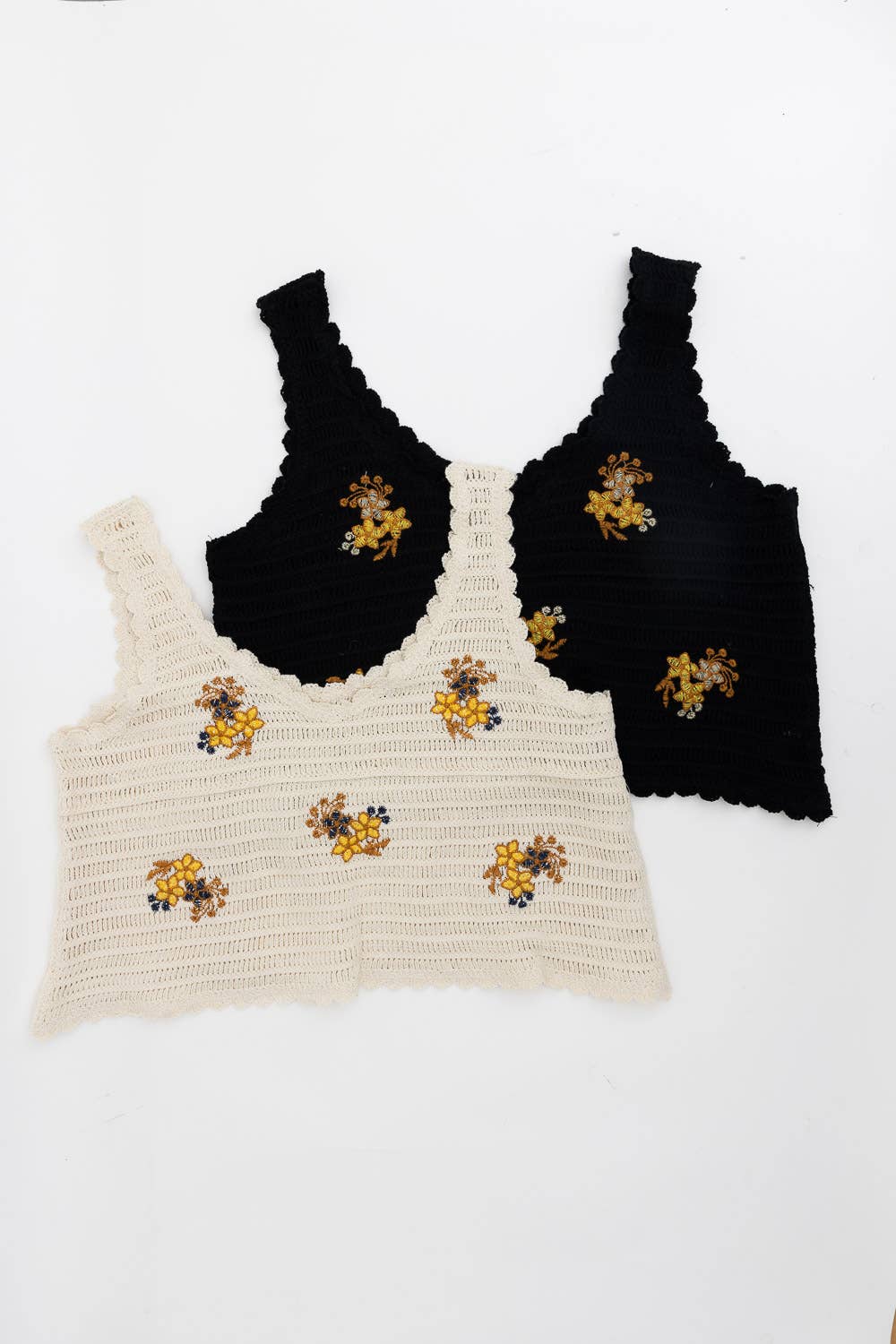Boho-chique gehaakte zonnebloementop. Voel de zomerse sfeer met onze bohemien-stijl, gehaakte zonnebloementop. Deze mouwloze, getextureerde blouse is verkrijgbaar in pastel- en levendige kleuren en is een must-have voor iedere boetiek. Met ambachtelijke finesse gemaakt, voegt hij een vintage-geïnspireerde touch toe aan elke garderobe. Groothandel PREPACK van 6 per kleur: 3 XS/S, 3 M/L Directe verzending Maattabel: XS/S: maat 34-38 (cupmaat: 70A 70B 70C 75A 75B) M/L: maat 40-44 (cupmaat: 70D 75C 80B 80C 85B)