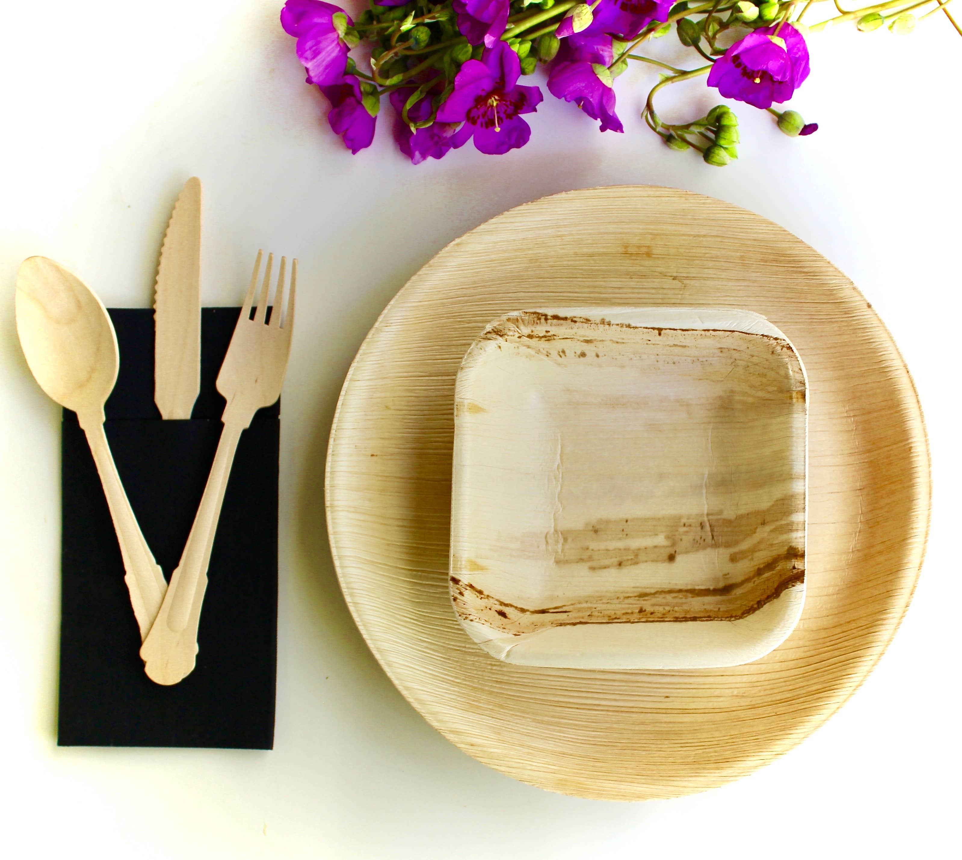 We zijn er trots op u ons assortiment natuurlijke, duurzame borden en kommen te kunnen aanbieden, gemaakt van de gevallen bladeren van de areca palmboom. Deze 100% biologisch afbreekbare borden en kommen zijn duurzaam, licht van gewicht en vereisen minimale verwerking van boom tot tafel. • Het gevallen palmblad wordt verzameld (het wordt niet gesneden - alleen de gevallen bladeren zijn geschikt) • het wordt vervolgens gewassen in bronwater • vervolgens hittegeperst in vorm (dit steriliseert ook het blad) - er worden geen chemicaliën, wassen, kleurstoffen of additieven gebruikt palmbladeren zijn een stijlvol en uniek alternatief voor ander wegwerpservies op de markt. • Sterker en natuurlijker dan maïs- of aardappelzetmeel, suikerriet, papier en bamboeplaten • ze zullen ons milieu niet schaden en kunnen worden verbrand, naar een stortplaats worden gebracht of gecomposteerd • magnetron-, oven- en koelkastbestendig.