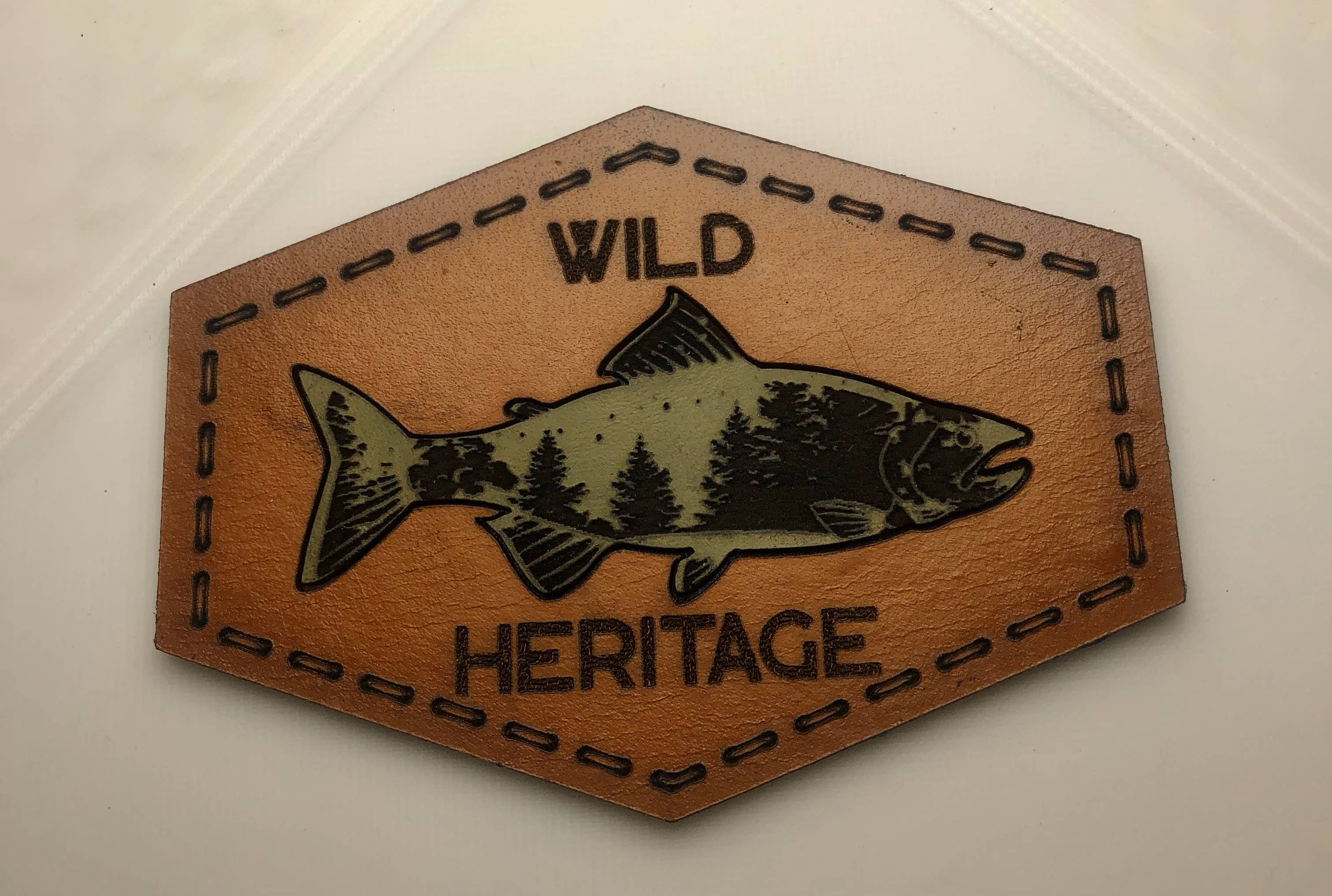 Camo-patch van hoogwaardig leer/kunstleer met kleeflaag om op hoeden en kleding te drukken. Meet een diameter van 2,75". Deze patch is voorzien van onze populaire Deer Skull-print in Fowl Play-camouflage met een echt leren middenstuk. Versier je favoriete hoed met onze hoogwaardige patches voor een opvallende look voor jagers en buitenliefhebbers. Onze patches worden geleverd met vooraf aangebrachte lijm van hoge kwaliteit en al ons echte leer is met de hand gekleurd en verzegeld met resoleen.