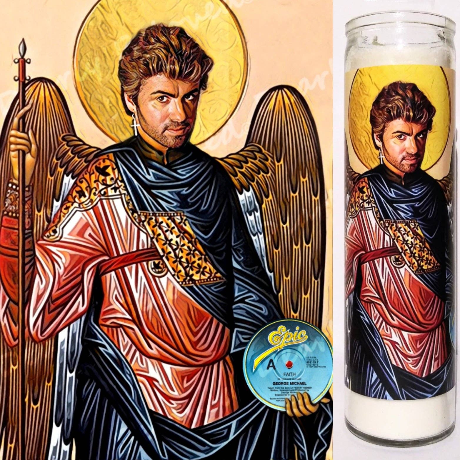 Zelfklevende etiketten voor gebedskaarsen met muzikale iconen, herschapen als heiligen zoals David Bowie, Freddie Mercury, Nick Cave, Dolly Parton, Stevie Nicks, Siouxsie Sioux en meer. Een geweldige optie voor internationale fans of iedereen die hoge verzendkosten wil vermijden en een volledige collectie wil ontvangen. Alle kaarsontwerpen zijn digitaal gemaakt en vormgegeven door Dearly Beloved en vervolgens geprint met laserjetinkt op hoogwaardig glanzend fotodecalpapier (ondoorzichtig). Elke afbeelding wordt met de hand uitgeknipt en is bedoeld om op een glazen kaars van 20 cm (8 inch) te worden geplakt of waar je maar wilt.