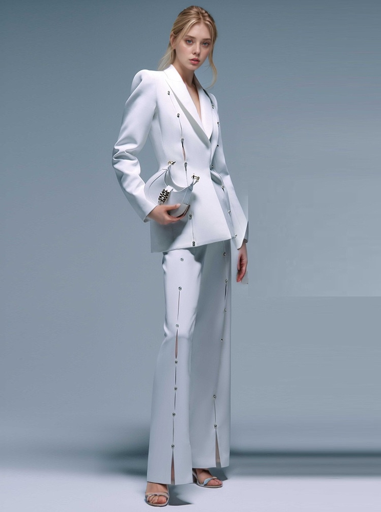 Omarm sculpturale elegantie met deze mouwloze feestjurk, ontworpen in een zachte neutrale tint en verfraaid met watervalvormige vlindervormige applicaties langs de schouder en het lijfje. De asymmetrische details voegen diepte en beweging toe, waardoor een speelse maar verfijnde silhouet ontstaat. Gemaakt van glad, gestructureerd materiaal, flatteren de hoge halslijn en de A-lijn snit het figuur terwijl ze een moderne, minimalistische charme behouden. Ideaal voor cocktailfeesten, galerieopeningen of avondrecepties, biedt deze jurk een onderscheidende mix van kunstzinnigheid en verfijning.