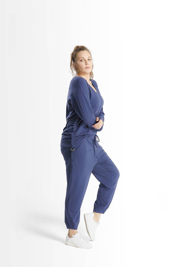 Loungen is gemakkelijk, moeiteloos en chique gemaakt. Ontspannen, licht getailleerde, comfortabele broek met een elegant laken dat een koel en vastklampvrij gevoel geeft. Iets bredere pijpen met een taps toelopende zoomopening aan de onderkant, twee schuine zakken aan de voorkant en een lichte elastische taille met trekkoord. Combineer hem met Kathy top in bijpassende kleur voor een ontspannen look of Gaia voor een gepolijst maar comfortabel gevoel. * Model is 5'10" en draagt maat XS * 46% katoen, 46% modal, 8% elastaan * Machinewas koude zachte cyclus, droogtrommel laag * Gemaakt in Turkije