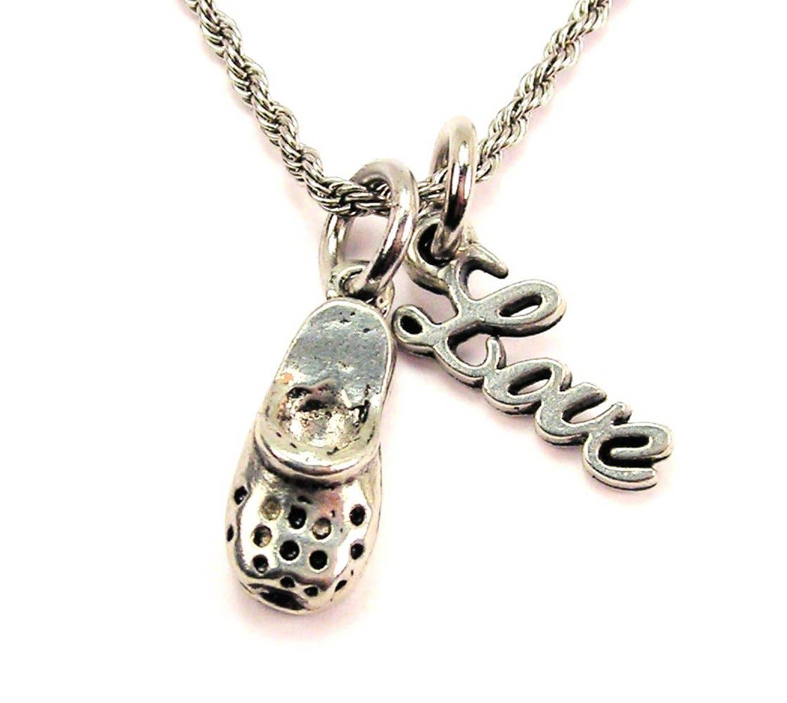 Een van onze 100% echte Amerikaanse tinnen bedels hing aan een stalen sleutelring van standaardformaat.