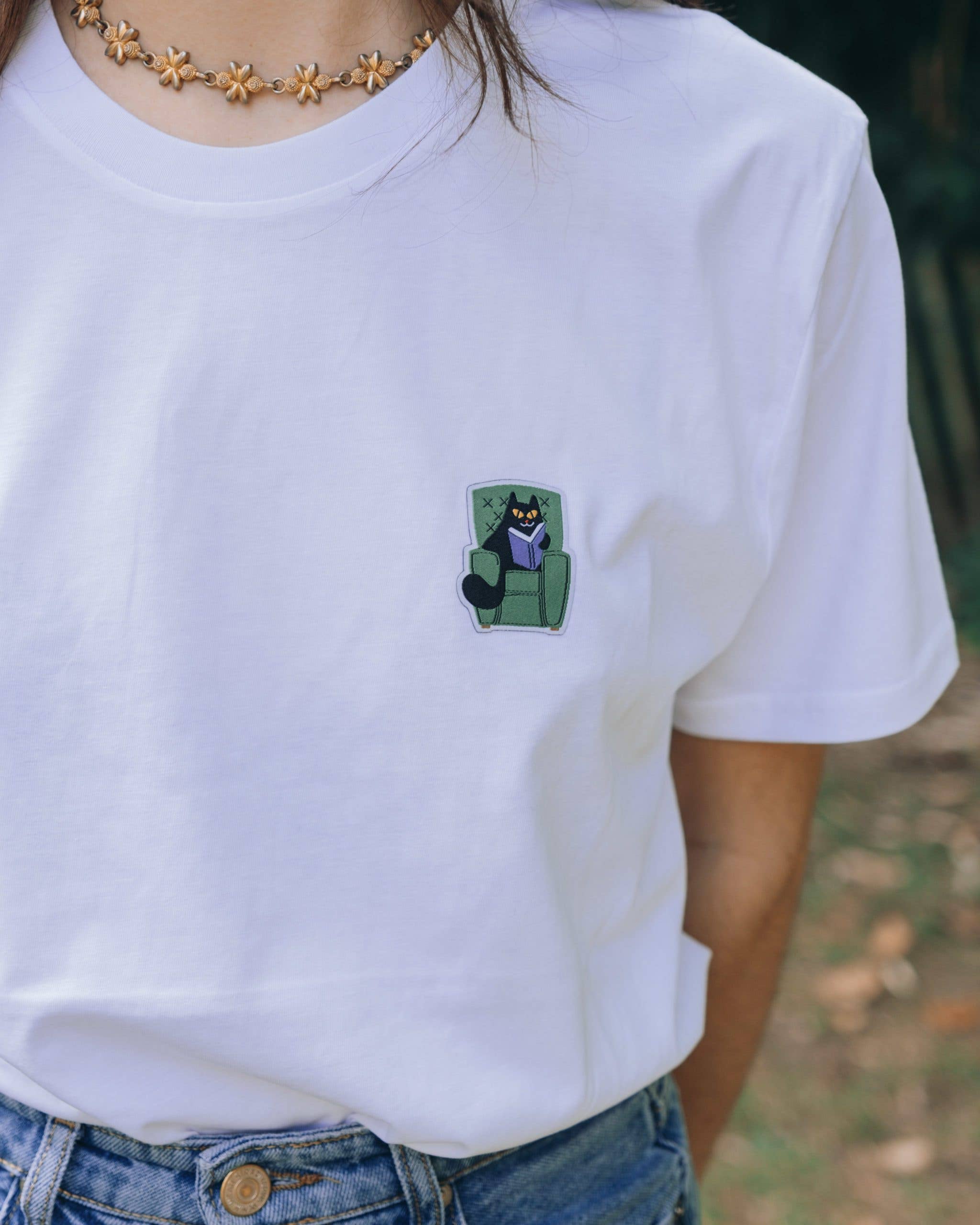 Bookworm Cream biologisch T-shirt voor volwassenen