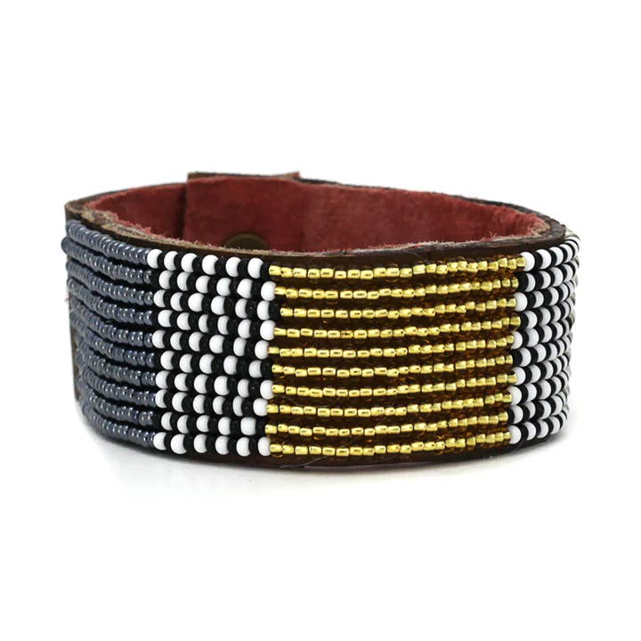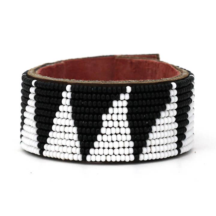 - 100% handgemaakt door redelijk betaalde ambachtslieden in onze coöperatie in handen van een partnerin Tanzania! - Gemaakt van vrije uitloop, natuurlijk leer en gevoerd met zacht suède. - Duurzaam en verstelbaar. - Vastgemaakt door een knoopsluiting met drie verstelbare lengtes. - Verstelbaar tussen 7"-8" in lengte - Drie breedtes beschikbaar in alle stijlen: Small (0,5 inch), medium (1 inch), groot (1,5 inch). - Items zijn allemaal handgemaakt, dus er is enige variatie in leertextuur/kleur. Elke manchet wordt geleverd met een verhalenkaart met artisanale foto's en informatie. Een gratis houten manchetrek is inbegrepen bij bestellingen van 6 manchetcollecties of $400 aan manchetten!