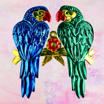 Mexicaanse handgemaakte kleurrijke metalen papegaaien voor aan de muur