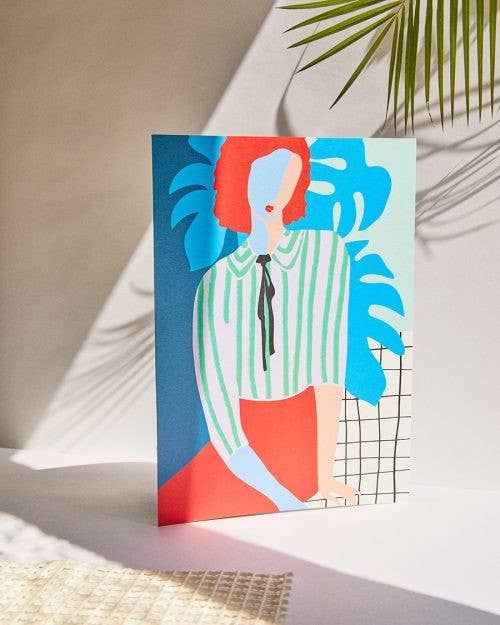 Een poster met levendige, warme kleuren. Gemaakt en gedrukt in Frankrijk op hoogwaardig papier. • Lokaal gedrukt • Per stuk verpakt in een transparante plastic hoes (A2-formaat wordt zonder hoes opgerold geleverd) • Onafhankelijke kartonnen achterplaat • Verkrijgbaar in vier formaten (ansichtkaart, A4, A3 en A2)