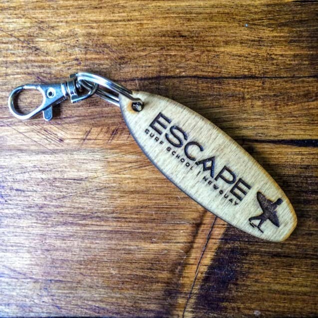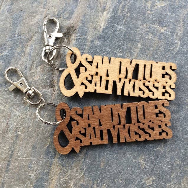 Een houten eikenblad in de vorm van een eikenblad gegraveerd met de woorden 'from tiny acorns mighty oak trees grow', dit staat op een sleutelhanger met een zilveren eikeltje.