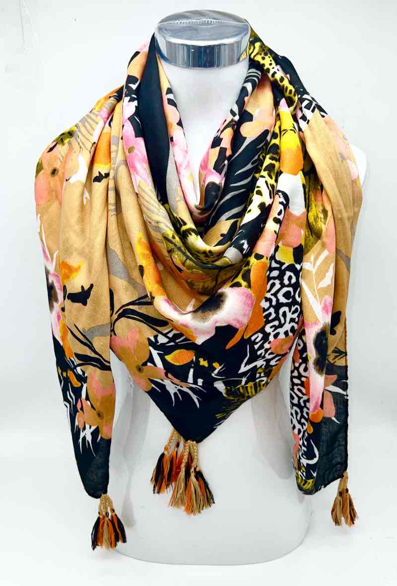 Elegante en verfijnde sjaal van 100% hoogwaardige zijde, bekend om zijn lichte, glanzende en zachte gevoel. De digitaal aangebrachte print zorgt voor levendige kleuren en scherpe details, voor een modern en onderscheidend ontwerp. Het compacte formaat van 50 x 50 cm maakt het een veelzijdig accessoire, ideaal om te dragen om de nek, pols of als stijlvolle toevoeging aan tassen en haar. Een ideaal product voor boetieks en conceptstores die op zoek zijn naar luxe accessoires met een innovatief design en hoge ambachtelijke kwaliteit.