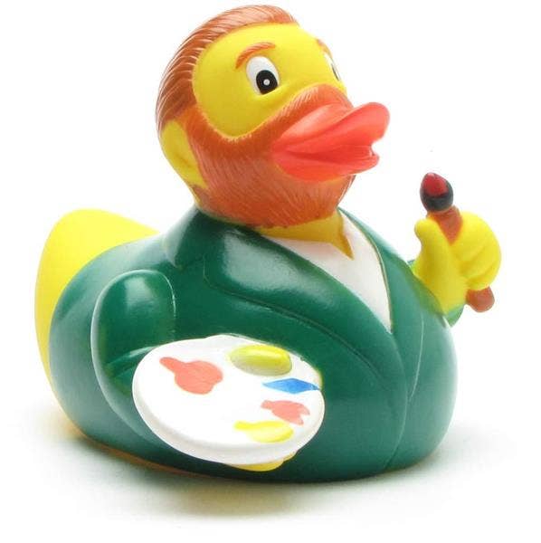 De grote Spaanse schilder als rubberen eendje. Salvador Dalí was een Spaanse kunstenaar en surrealist die bekend werd in de 20e eeuw. Hij stond bekend om zijn vreemde en provocerende kunstwerken, die vaak irrationele en verwarrende beelden uit zijn onderbewustzijn bevatten. Dalí was ook beroemd om zijn extraverte persoonlijkheid en opvallende uiterlijk. Hij droeg vaak flamboyante kleding en gaf schandaalachtige interviews om de aandacht op zichzelf en zijn kunst te vestigen. Afmetingen: L: 10 cm B: 8 cm H: 9 cm Piepgat: Nee Zwemt rechtop: Nee Materiaal: vinyl Aanbevolen leeftijd: Vanaf 18 maanden