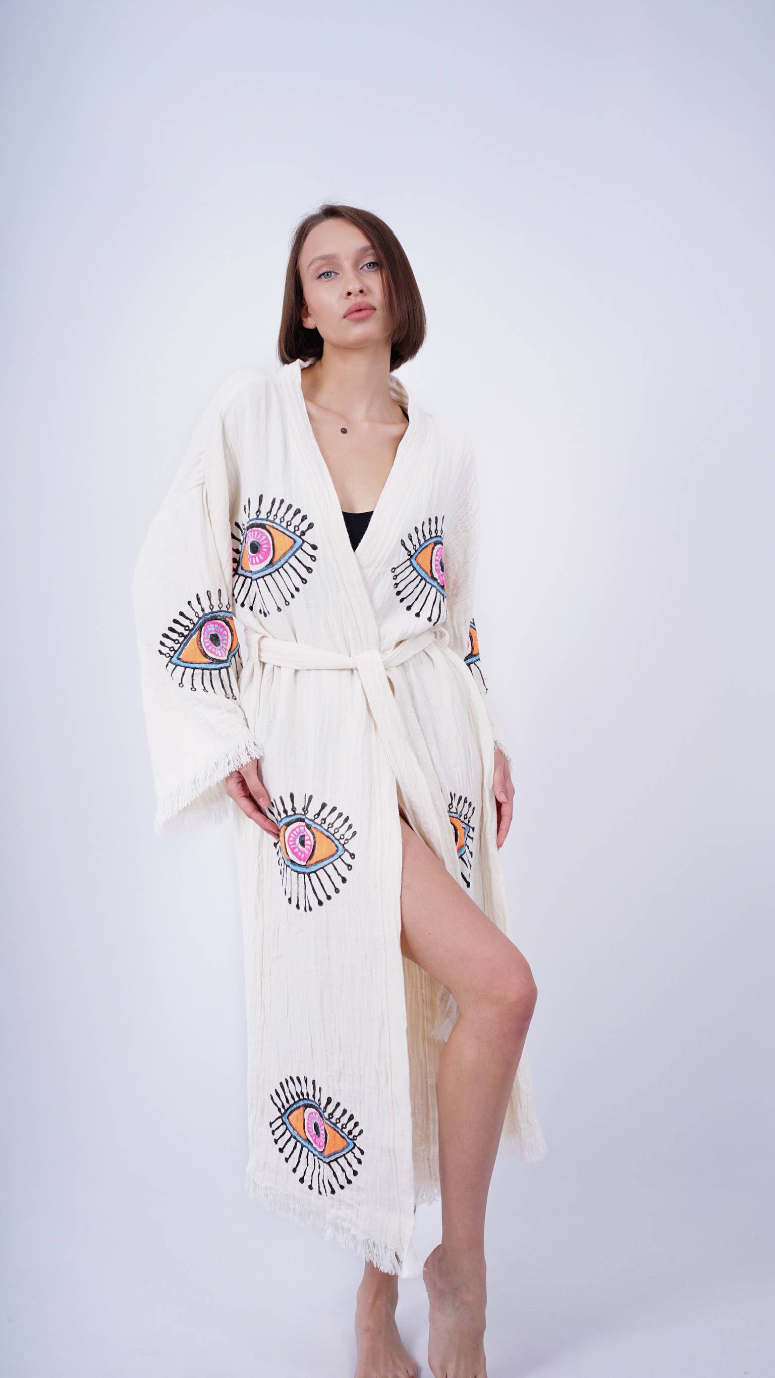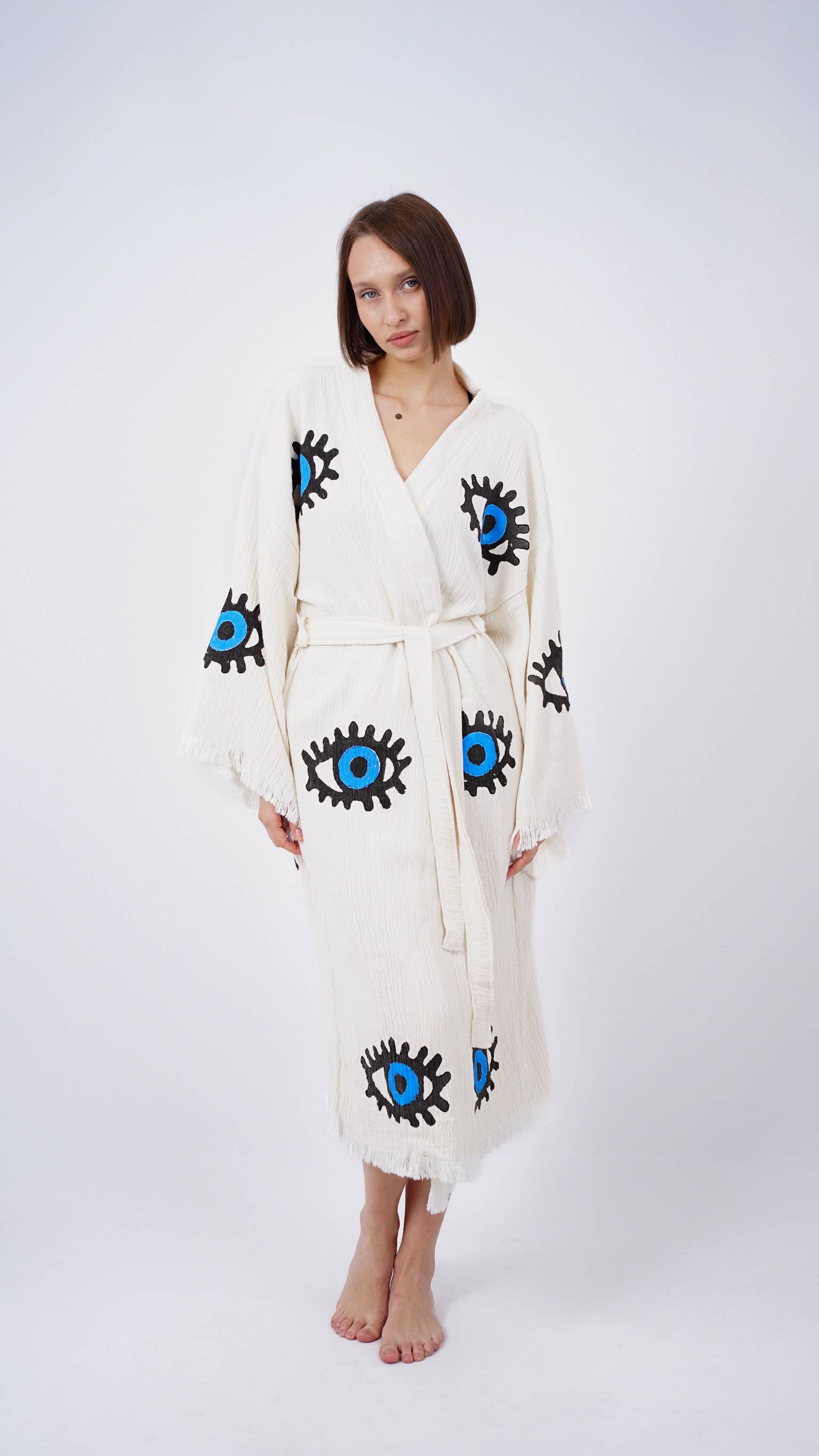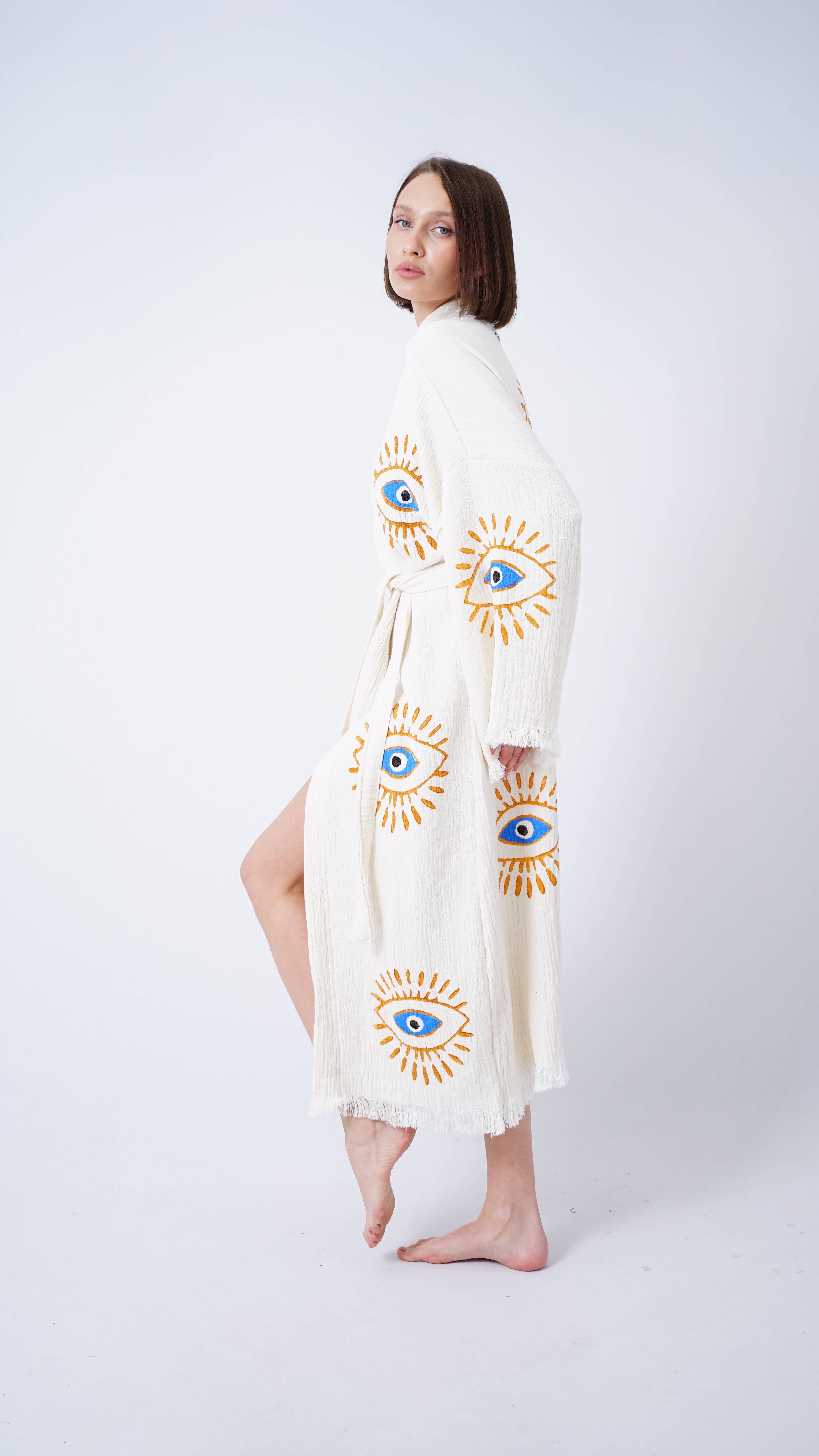 Handgemaakte Boho Festival Kimono met Boze Oog, Boho Strandkleding