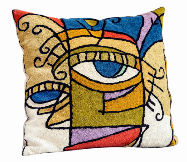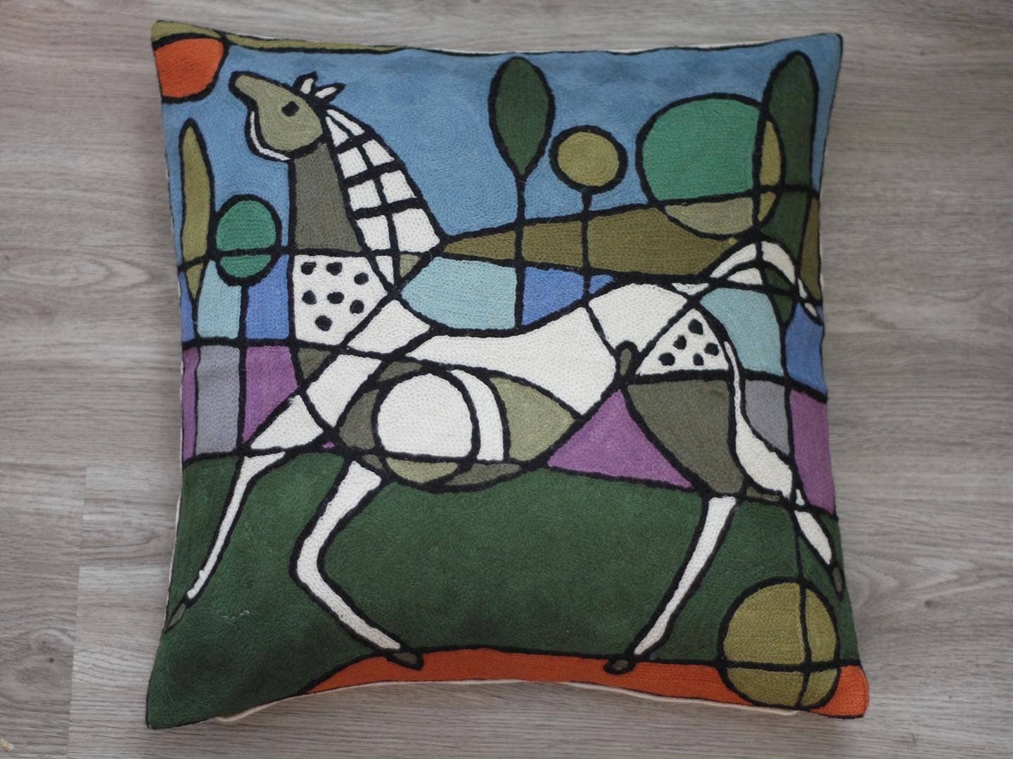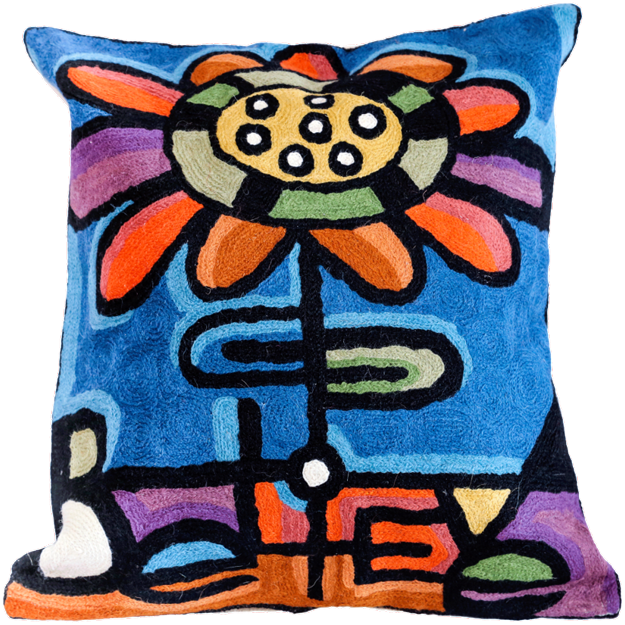 Onze producten zijn ontworpen in Canada in samenwerking met Canadese kunstenaars en volledig handgemaakt door meesterambachtslieden met behulp van eeuwenoude borduur- en textieltechnieken. Onze producten zijn met de hand geborduurd met 100% handgeverfde wol in een eerlijke handelsomgeving. Door moderne ontwerpen en kleuren te combineren met aloude technieken, streven we ernaar producten te creëren die tijdloos zijn in ontwerp, esthetische aantrekkingskracht en duurzame kwaliteit. We produceren fair trade en zorgen voor een minimale impact op het milieu. We werken samen met kleine ambachtelijke families uit de huisnijverheid en produceren onze eigen ontwerpen met behulp van traditioneel verven, weven, kettingsteekborduurwerk, Ontworpen in Canada door Shirley Lloyd Davies Handgemaakt in Kasjmir met wol en op de achterkant met katoenen canvas (80% wol en 20% canvas) Verkrijgbaar in 18″ x18″. Geborduurde kettingsteek
