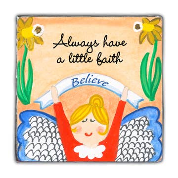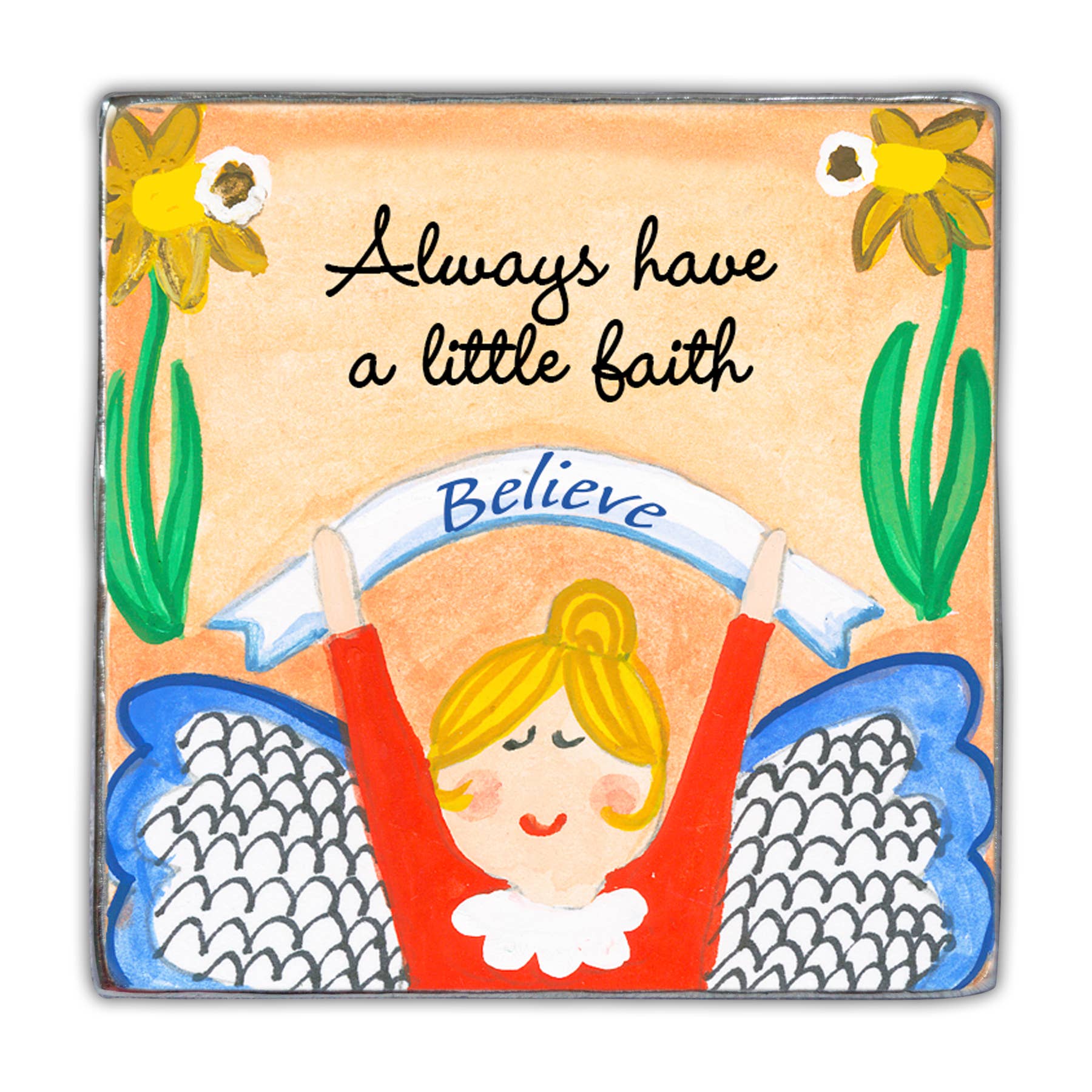 Deze schattige magneten maken deel uit van onze "Always an Angel" lijn met kunstwerken van Carole Eldridge. Gemaakt van gegoten metaal met een gehamerde textuur, met kleurrijk gesublimeerde ontwerpen en inspirerende boodschappen. 5,7 cm vierkant.
