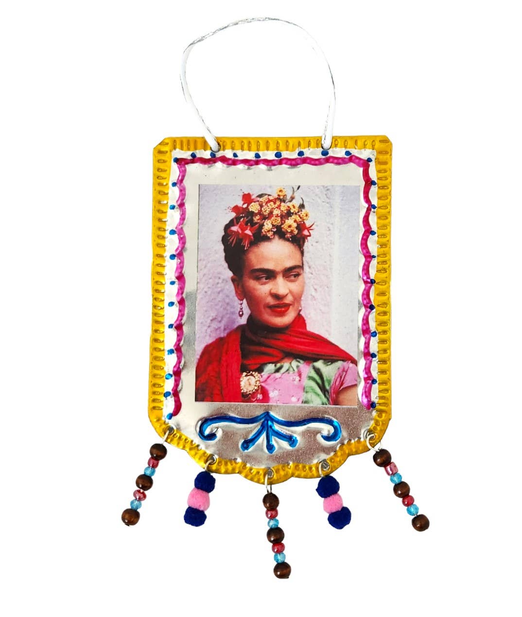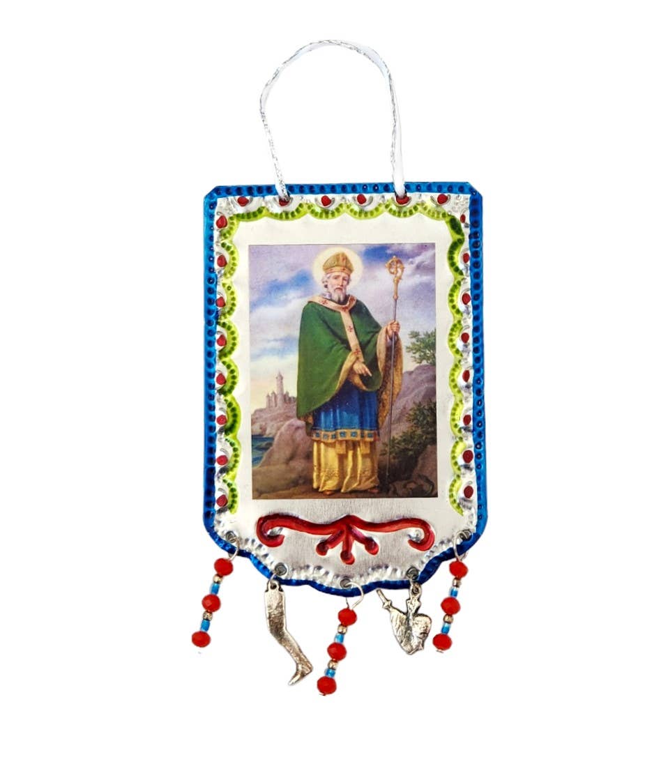 Deze handgemaakte tinnen banierornamenten bevatten een verscheidenheid aan Onze-Lieve-Vrouw van Guadalupe ontwerpafbeeldingen. Elk item is "winkelklaar" verpakt in een aantrekkelijke, kristalheldere hangzak. Handgemaakt in Mexico, tonen deze prachtige tinnen banieren een verscheidenheid aan Guadalupe-kunst. Ze zijn geweldige geschenken voor een religieuze vriend of voor een verzamelaar van Mexicaanse volkskunst.