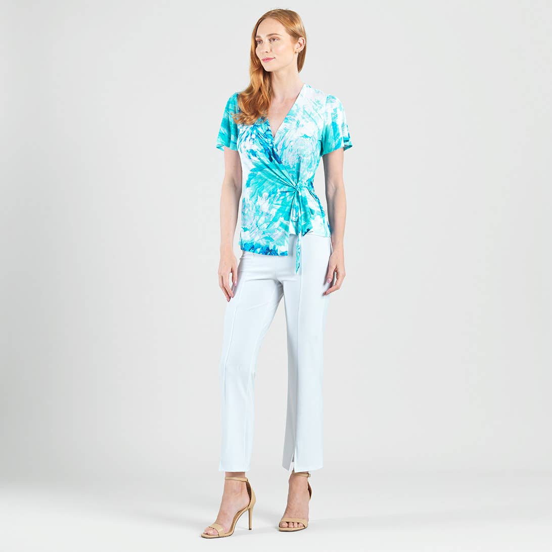 T192P20 - Surplice Faux Wikkel Zijstrik Top - Zonsondergang Bloemblaadjes