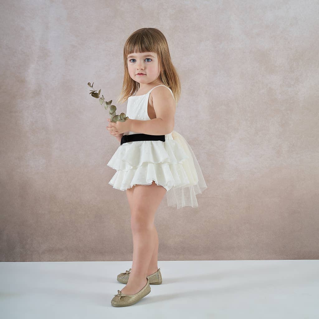 Deze schattige zwierjurk heeft pofmouwen en een kostbare strikaccent aan de achterkant. Zachte gebreide stof zorgt voor comfort de hele dag door. De lieve vlindertuin toile zal je hart doen fladderen! Past goed bij Bubblegum Pink, Wit. Wasinstructies: Machinewas koud; alleen niet-chloorbleekmiddel indien nodig; op lage temperatuur drogen Stofsamenstelling: 95% Katoen, 5% Spandex Referentiecode: G4153