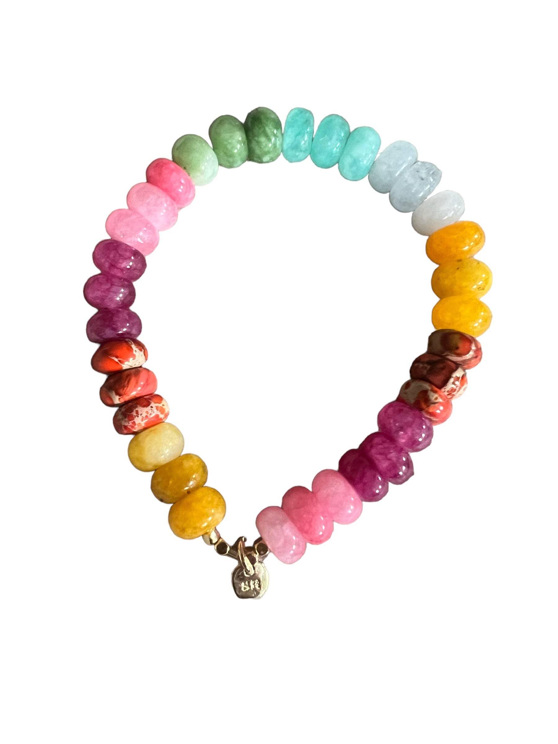 Nou, deze armband was zo'n groot succes dat het tijd was om een hele collectie te maken van alleen maar rekbare kralenarmbanden zonder de middelste kraal of Boeddha, maar ALLEEN de sr-accentbedel. Zie opties hieronder. Zoe *gf bal / Chloe *boeddha midden (beide vermeld als afzonderlijke producten) Gemiddelde maat is 6,5” Prachtige heldere gemengde edelstenen op elastiek, schattig en leuk!