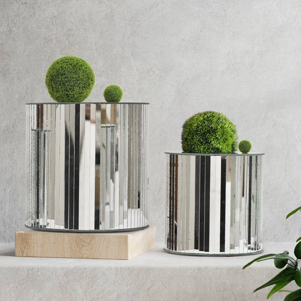 Maak je klaar om geëlektrificeerd te worden door de extreme glans van deze metalen standaards. Ze zijn perfect om een modern, strak en opvallend detail aan je huis toe te voegen. Beschikt over galvaniseren om een hoge glans te creëren. Standaard is multifunctioneel met een verwijderbare bovenplaat. Montage van de standaard is niet nodig. 1 groot + 1 klein per koffer. Productafmetingen voor artikel #11 -4203GD/2: Groot (Hoogte = 40" | Diameter = 12" x 12") & klein (hoogte = 32" | Diameter = 10" x 10"). Productafmetingen voor artikel #11 -4203S/2: Groot (Hoogte = 40" | Diameter = 12" x 12") & klein (hoogte = 32" | Diameter = 10" x 10").
