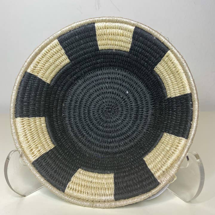 Met behulp van oude Swaziweeftechnieken, samen met ingenieus eigentijdse ontwerpen, creëren de vrouwelijke ambachtslieden briljant getinte, zorgvuldig geweven manden uit sisal. Sisal, een plant uit de agavefamilie, is een wiet die in heel Swaziland groeit. Omdat het invasief is, is sisal ideaal voor ambachtelijke productie, omdat oogsten de natuurlijke biodiversiteit van het land niet bedreigt. Meer dan 700 vrouwen vullen hun inkomen aan door verschillende aspecten van het creatieve proces uit te voeren, waaronder het bereiden van rauwe sisal en het sterven ervan. Alle handelingen worden met de hand uitgevoerd. Elke sisalmand wordt geleverd met een touwtje aan de achterkant zodat je hem aan de muur kunt hangen. Naast het maken van een prachtig tafeldisplay of fruithouder, kunnen deze manden ook als kunst worden opgehangen. Je kunt ze combineren met andere manden of kunstwerken om een muurcollage te maken. Maten; Klein - Appx 7" Medium - Appx 9" Groot - Appx 12"