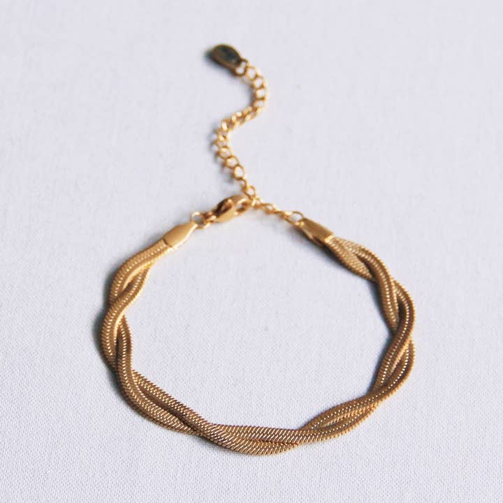 Stalen armband 'platte slang' - goudkleurig