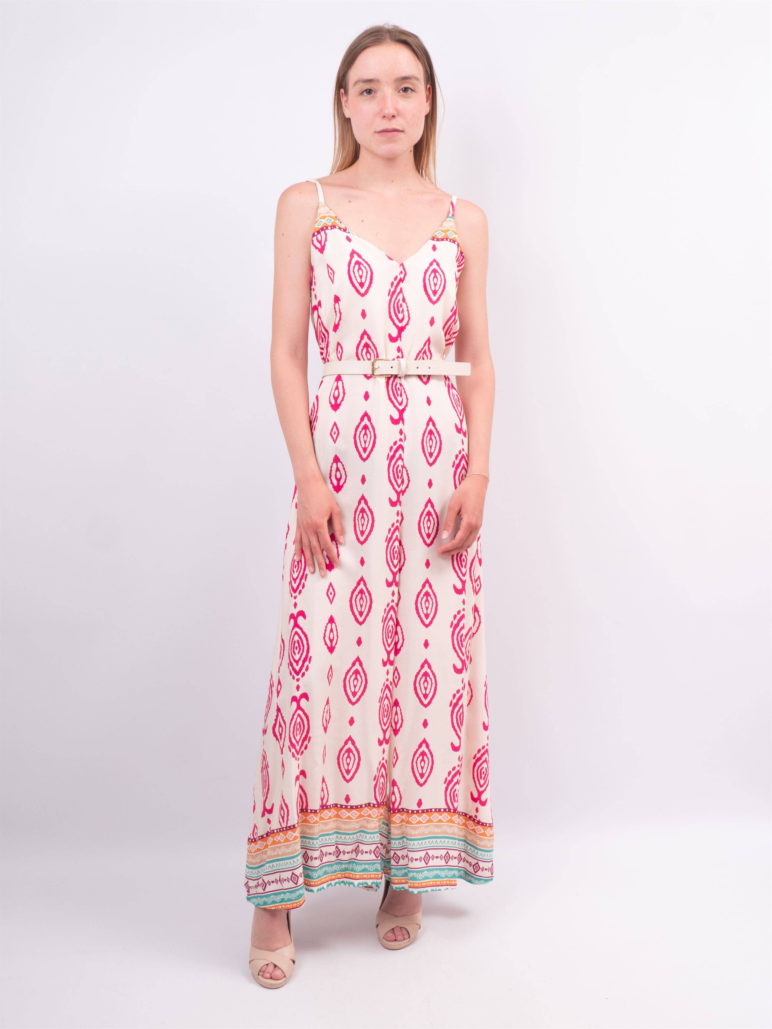 Losvallende mouwloze jumpsuit met geruit contrastmotief