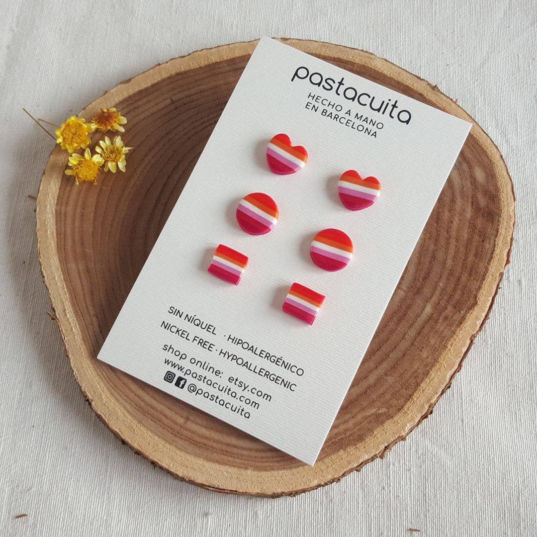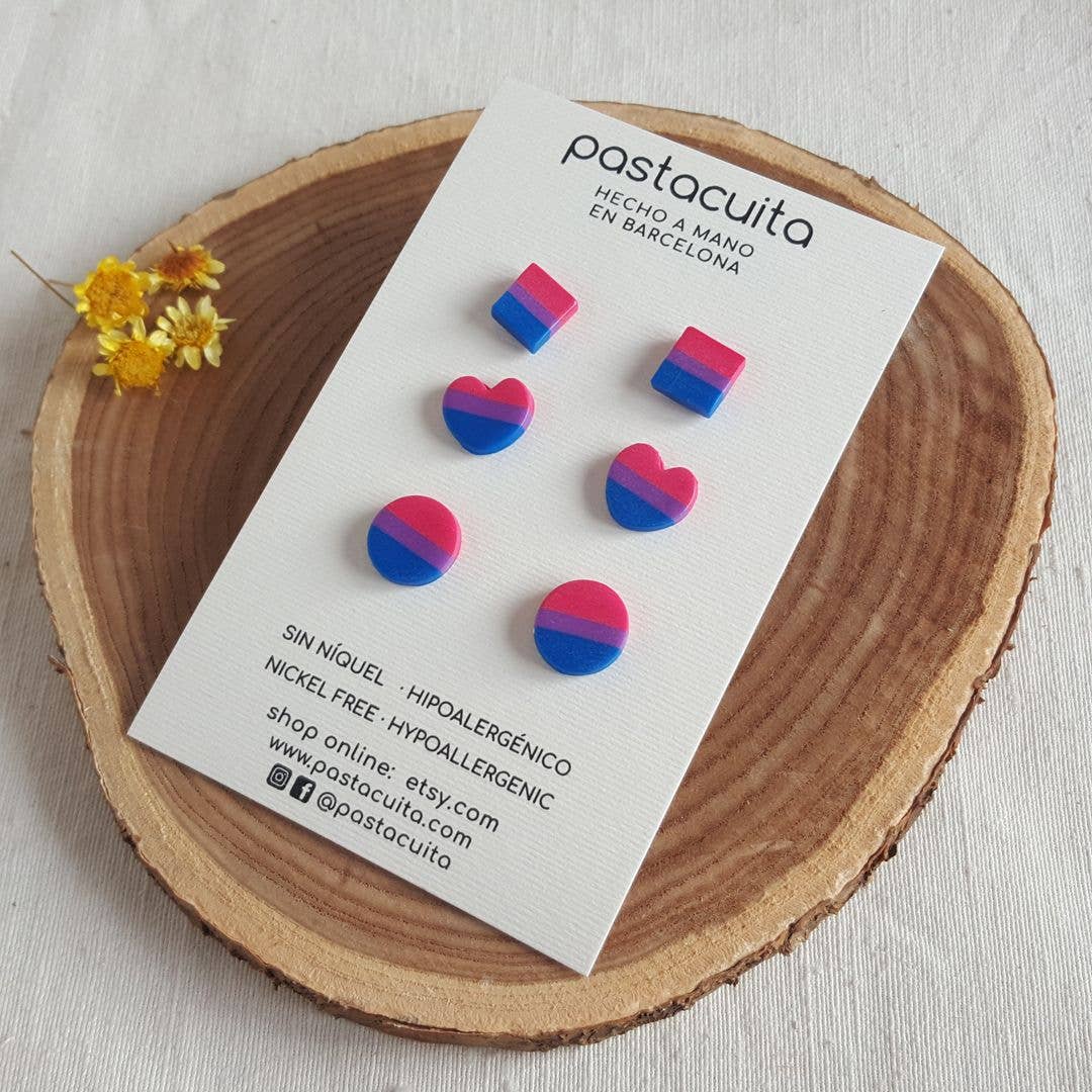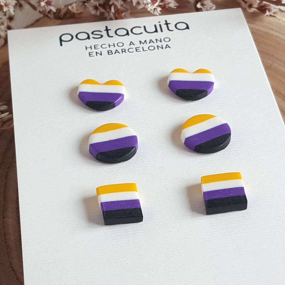 Vierkante, ronde en hartvormige LGBT-oorstekers, ideaal als cadeau voor Gay Pride Day of voor het hele jaar. De onderstellen zijn gemaakt van roestvrij staal en veroorzaken nooit allergieën of slijtage. . MATEN: kleine ronde oorbellen 10 mm/middelrond 12,5 mm/hart 11 x 12 mm/vierkant 10 mm. . ONDERHOUD: Er is geen onderhoud nodig, roestvrij staal en polymeerklei kunnen nat worden. Als je pasta vuil wordt met make-up of iets anders, kun je deze schoonmaken door deze af te vegen met water en zeep. Als de vlek moeilijk te verwijderen is, gebruik dan een doek met aceton (nagellakverwijderaar is voldoende) . INSTAGRAM: Volg ons op Instagram op @pastacuita om ons nieuws te zien, meer te weten te komen over het productieproces of deel te nemen aan onze loterijen.