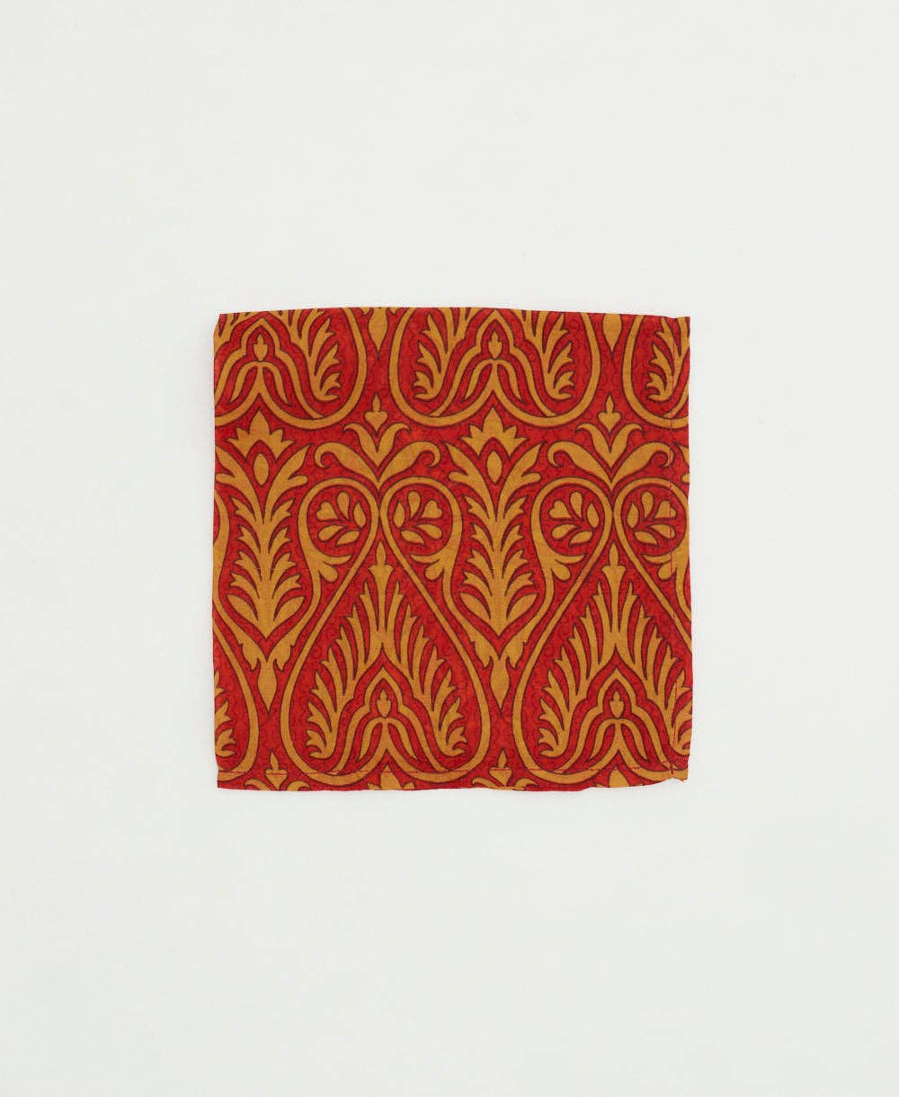 SKU: SPQ240307 Gemaakt in India Kleur: Rood Onderhoudsinstructies: Alleen chemisch reinigen Gewicht: 36,29 g (1,28 oz) Afmetingen: 30,5 x 30,5 cm (12 x 12 in) Productmaterialen: Gerecycled en Upcycled Verpakking: Recyclebaar Productie: Ethisch verantwoord en Fairtrade