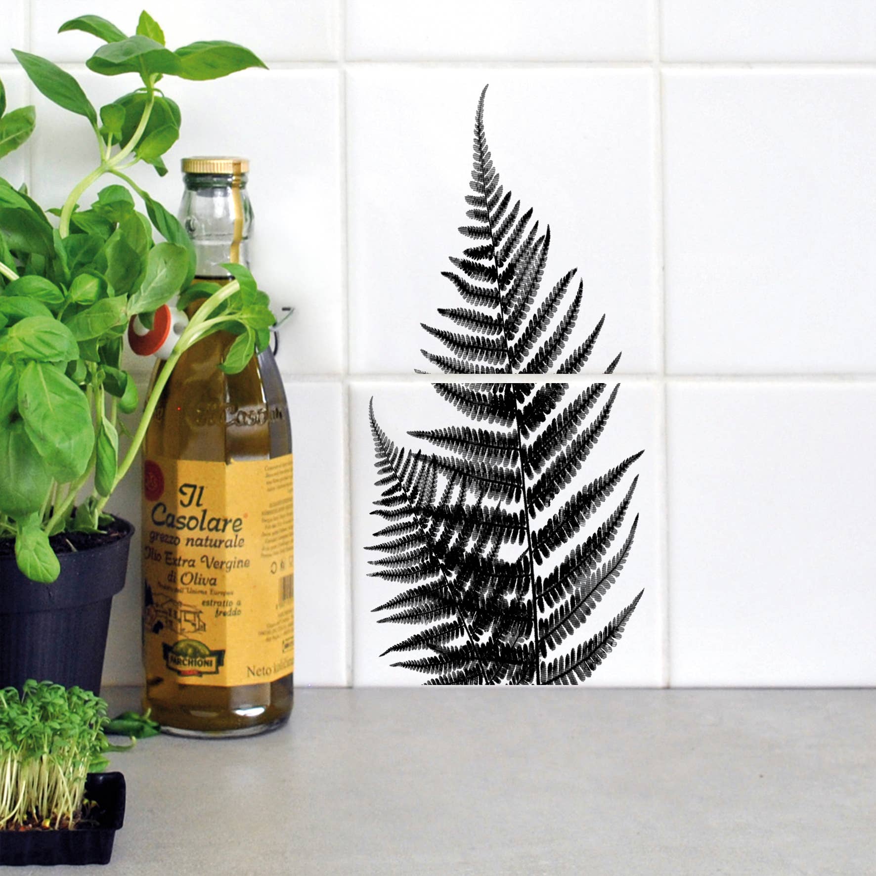 Hoogwaardige badkamer- en keukentegelstickers. De decors geven tegels gemakkelijk binnen enkele minuten een nieuwe en unieke uitstraling. Ontwerp en productie zijn 100% Made In Germany, ze worden geassembleerd door Lebenshilfe in Sleeswig Holstein. Inhoud: Waterafstotende PVC-stickers (bedrukt met UV-inkten en afgewerkt met glanzende UV-lak), inclusief meertalige kleefinstructies