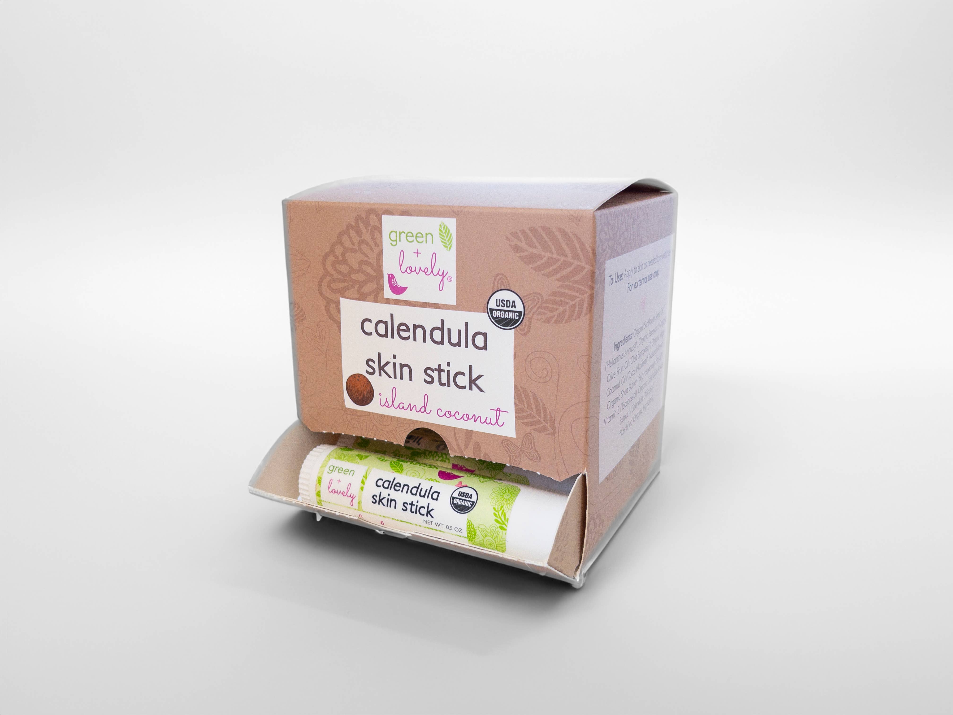 Onze gecertificeerde biologische lotionstick is draagbaar en gemakkelijk aan te brengen op die ruwe, droge huidgebieden die intens vocht nodig hebben. Onze formule is doordrenkt met biologische calendulabloemen om deze balsem helende eigenschappen te geven. Deze huidsticks bevatten ons best verkopende product, de kruidencalendula-zalf van de natuur in een groot 0,5 oz stickformaat.