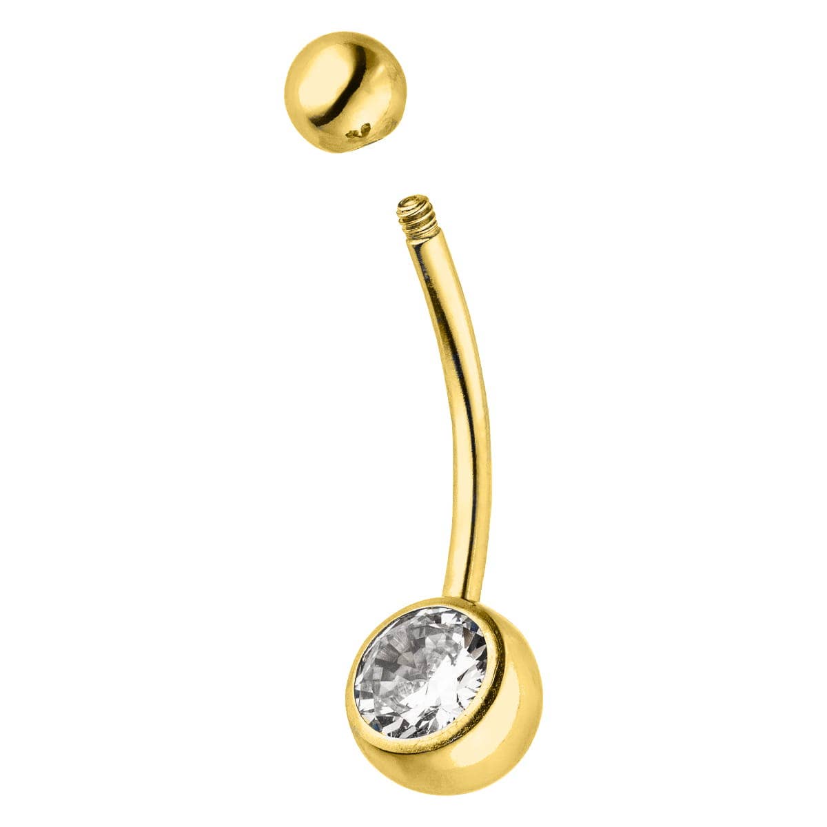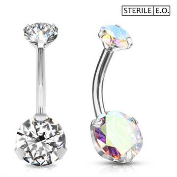 Bezellige CZ-steen 316L chirurgisch staal draadloze drijvende navelpiercing met convexe schijf. - Dikte: 14GA (1,6 mm) - Lengte: 1/2" (12 mm) - Balmaat: 5 mm - Materiaal: 316L roestvrij staal/legering