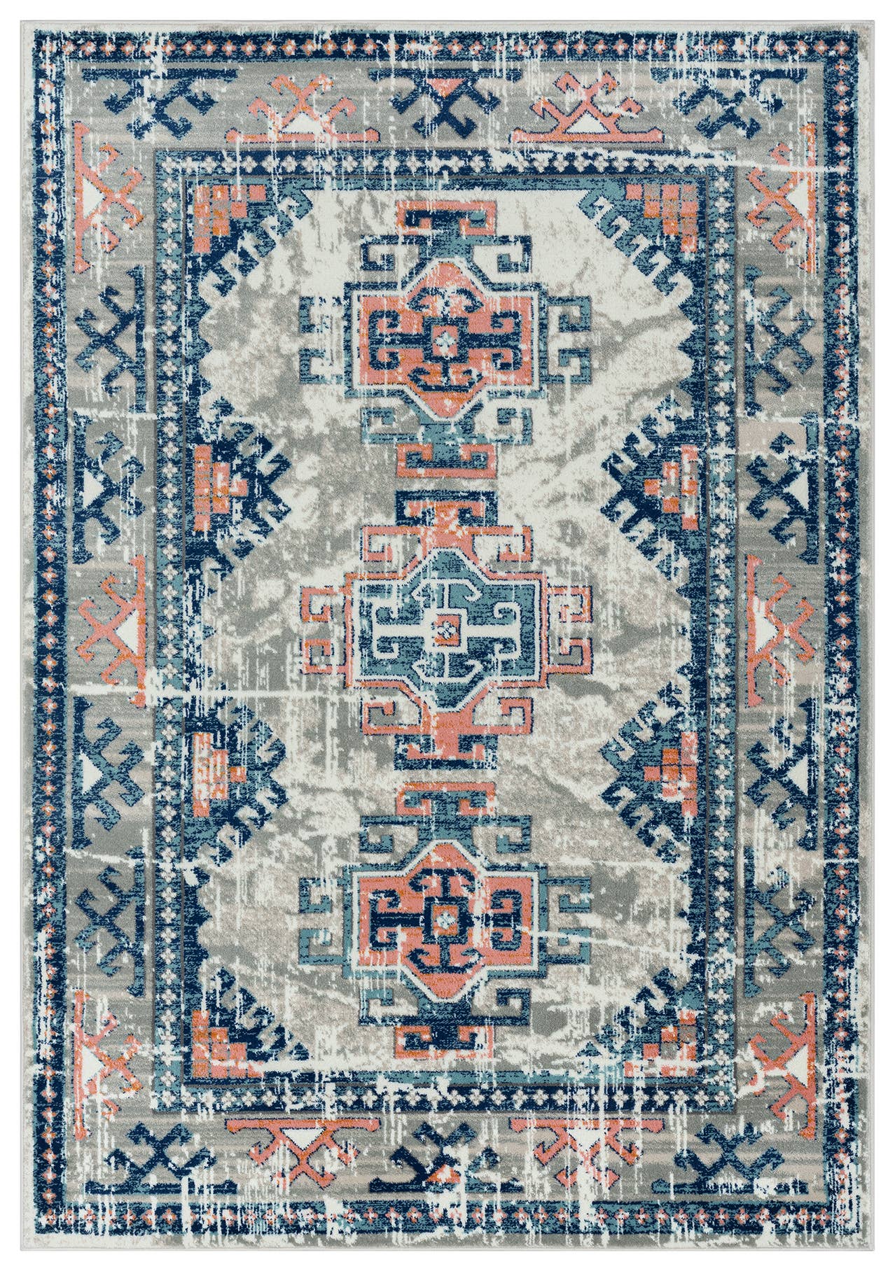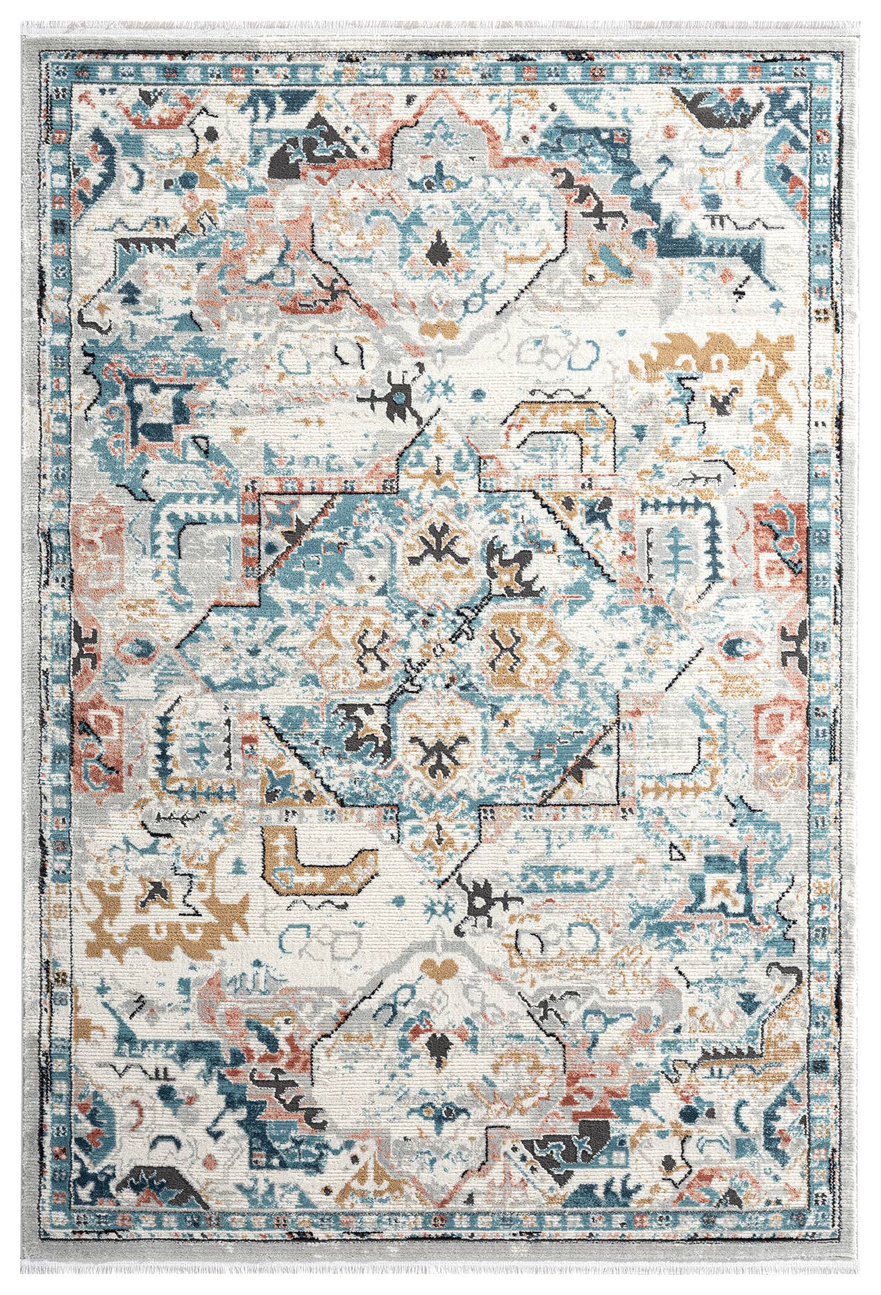Abani tapijten Azuurblauw AZR170A Vintage oranje ivoor diamant vloerkleed