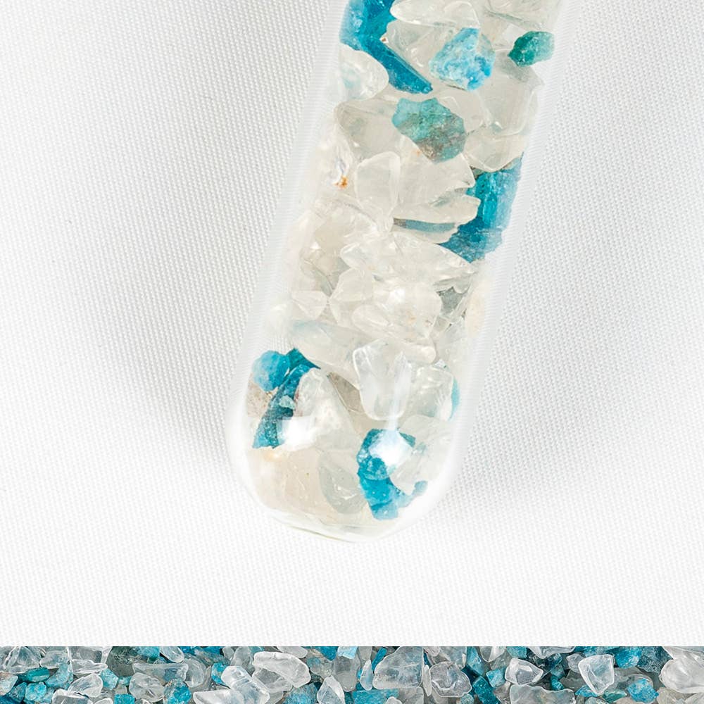 Chakra waterstaaf 'Voorhoofdchakra, Ajna' - lapis lazuli en bergkristal Afmetingen: ca. 25 x 2 cm Bevordert mentale helderheid, spiritueel inzicht en gemoedsrust. Het speelt een centrale rol in ons vermogen om verder te zien dan het fysieke rijk en een dieper begrip en bewustzijn te krijgen. Breng vitaliteit terug in je water en verbeter je drinkwater op een eenvoudige en betaalbare manier met deze waterstaaf. Laat je betoveren door onze prachtige edelsteencombinaties en proef het verschil. *Opmerking: Edelsteentherapie (lithotherapie) kan de activering van zelfhelende krachten stimuleren en het welzijn verbeteren. Dit vervangt echter geen diagnose of behandeling door artsen; alleen zij kunnen een diagnose stellen en behandelingsmethoden adviseren. Netto gewicht: 0,5 kg Materiaal: glas, edelstenen