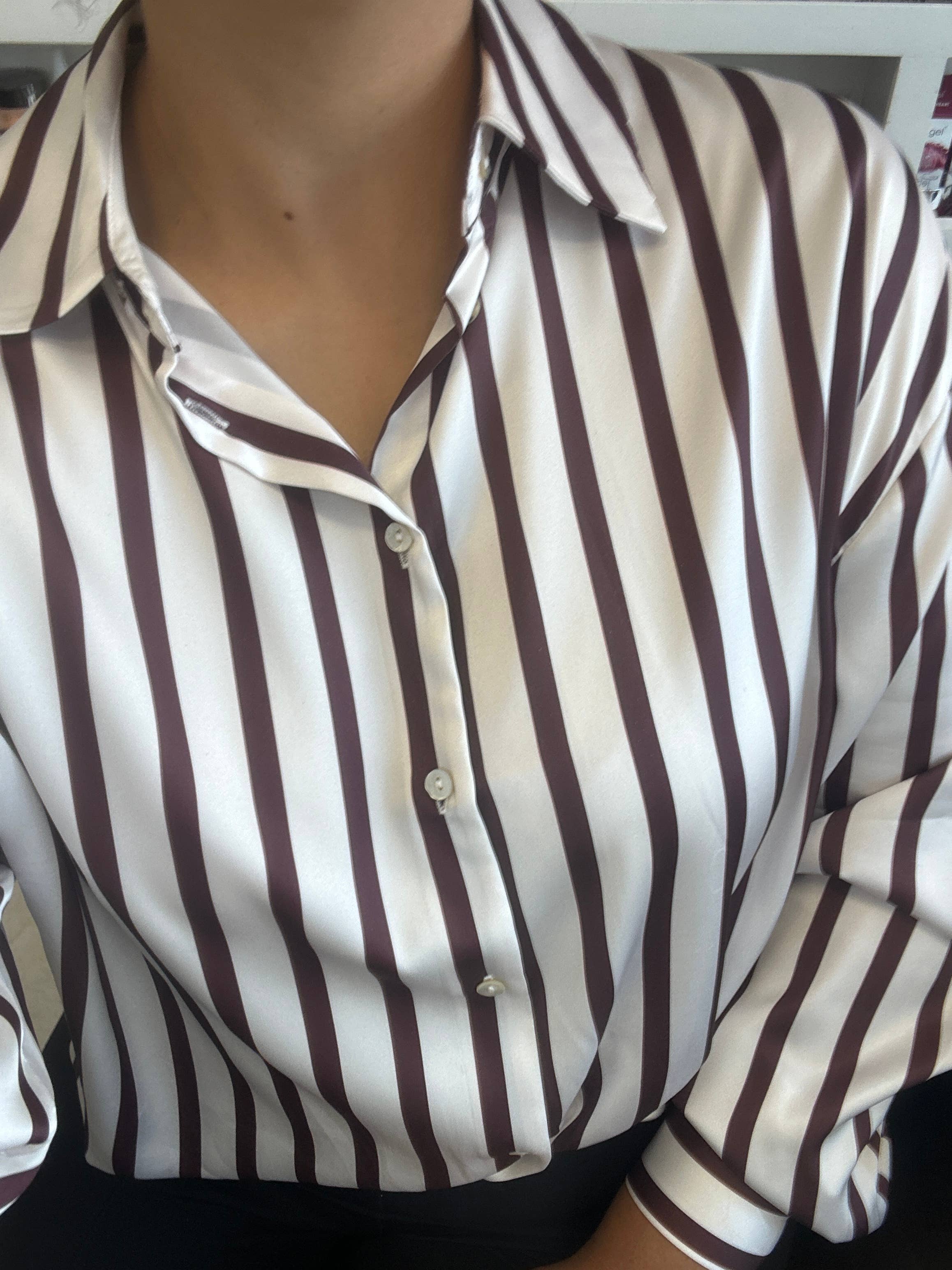 - Kraaghalslijn - Verticaal meerkleurig gestreepte colorblock blouse - Voorzijde met knoopsluiting - Casual verlaagde schouder - Lange mouwen met knoopmanchetten - Verticaal gestreepte colorblock blouse - Achterkant York - Lichtgewicht en ademend voor lente, zomer en herfst casual - Bestseller * Model is 5'8, 32-27-37, draagt SMALL
