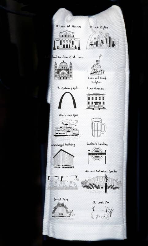 Stadscollecties Baton Rouge Witte katoenen theedoek met zwarte illustraties. 12x17 inch