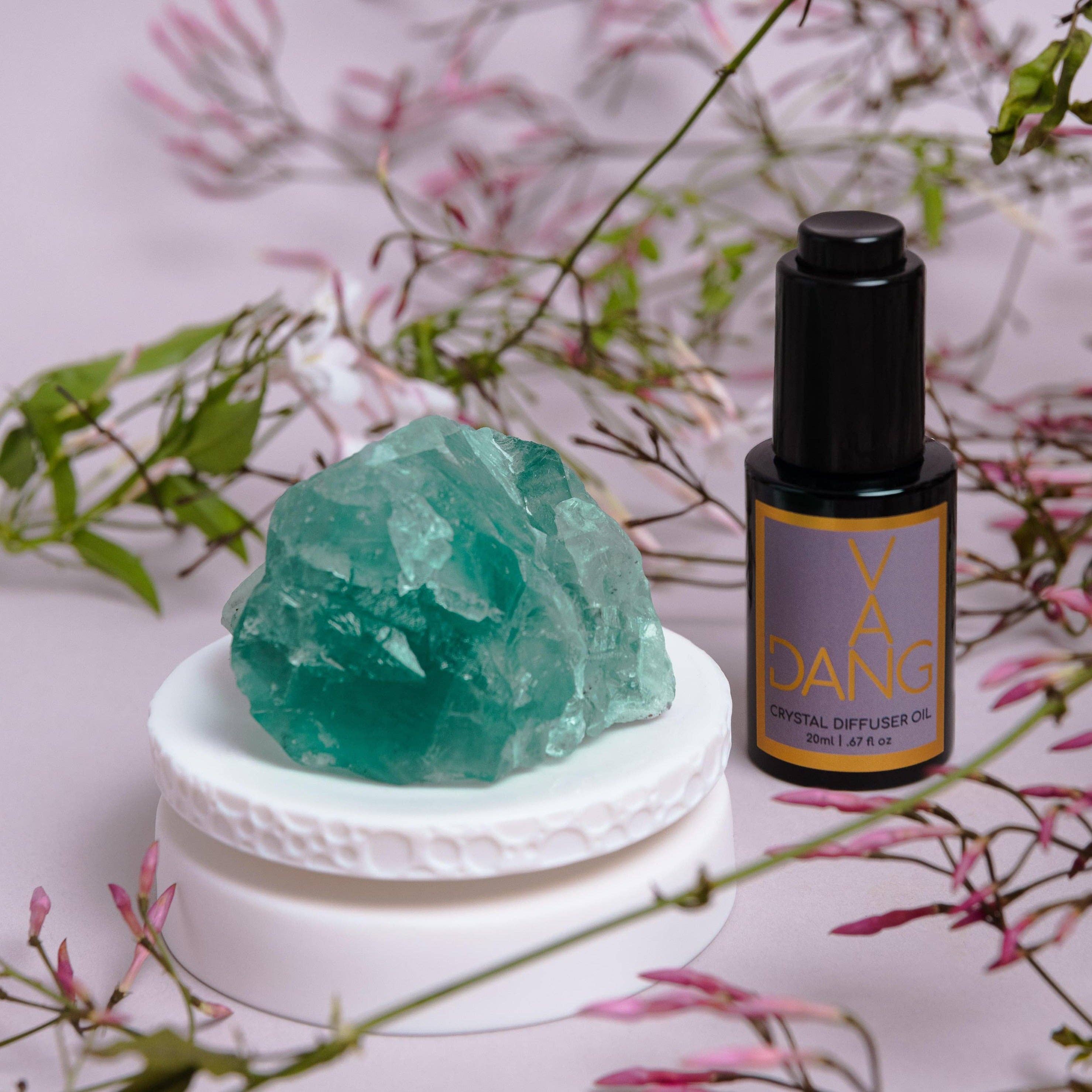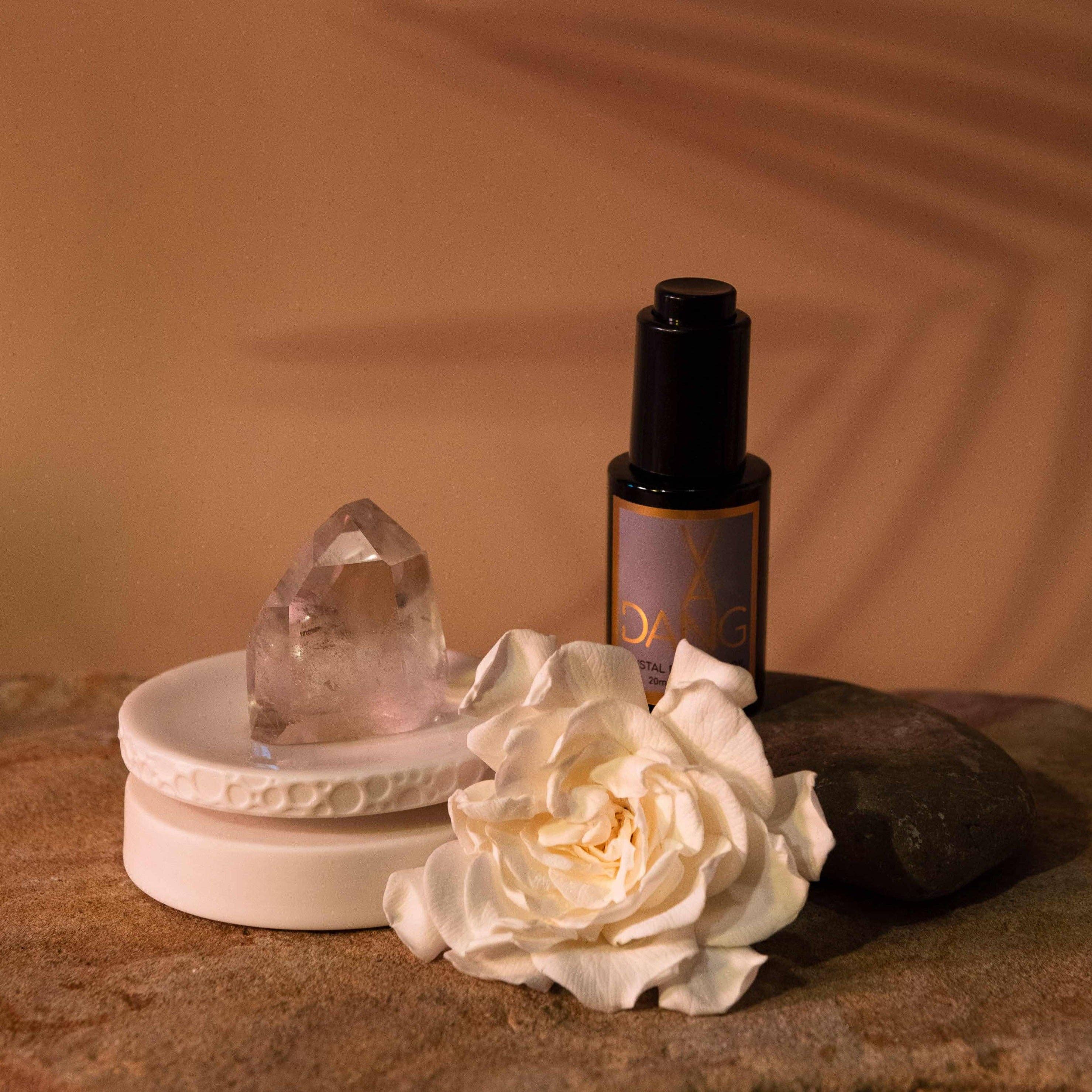 The Stone: Black Tourmaline trekt inspiratie, mededogen, tolerantie en welvaart aan. Het brengt de rechter-linkerzijde van de hersenen in evenwicht en verlicht de spanning. Het is ook een krachtige blocker van negativiteit uit alle richtingen. Matte porseleinen sokkel met geglazuurde bovenkant De Crystal Meditation Set wordt ook geleverd met een porseleinen voetstuk. Neem elke ochtend en avond, en wanneer je je gestrest voelt, een moment voor jezelf. Laad je kristal op met een paar druppels van je favoriete olie, haal diep adem, bepaal dan je intenties en manifesteer je dromen. Alle zes VAN DANG-lanceringsgeuren zijn verkrijgbaar in ons oliedruppelformaat - apart verkrijgbaar of als onderdeel van een Crystal Meditation Set.