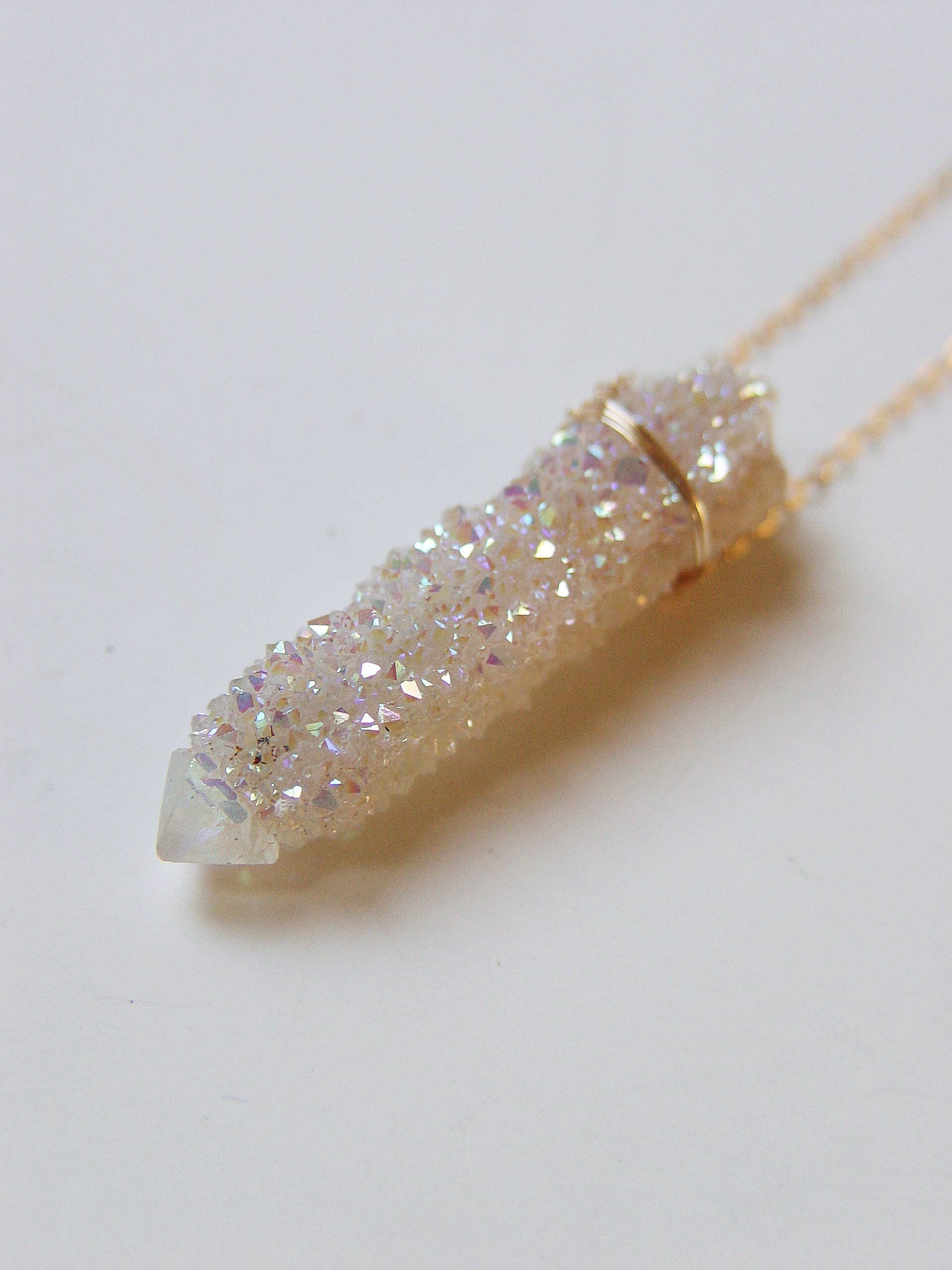 Robuuste ketting met een sprankelende lavendelkleurige Spirit Kwarts, gezet in een gouden prong-zetting en aan een fijne 18-karaats goudgevulde ketting voor een casual luxe uitstraling. - Gerecycled 18-karaats goud gevuld - Spirit Kwarts kristal ongeveer 15x35 mm - Kettinglengte 46 cm - Met de hand gemaakt op bestelling in mijn studio in Californië - Beperkte oplage stuk! - Houd rekening met natuurlijke variaties in kristalvorm, kleur en grootte - Elk stuk is uniek, net als jij!