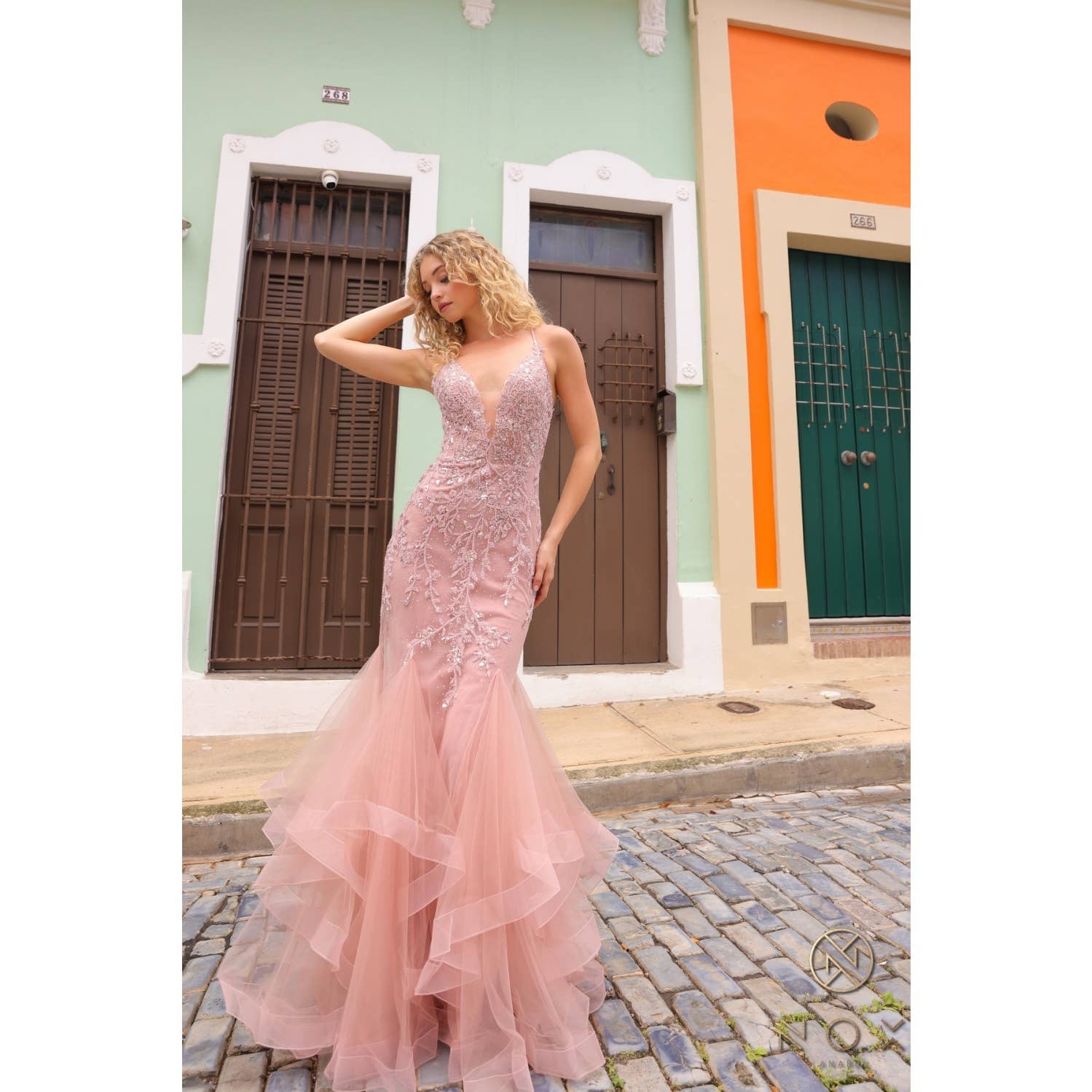 GLITTERYDEEP V-HALS LIJFJE MET TROMPETROK OP DE VLOER