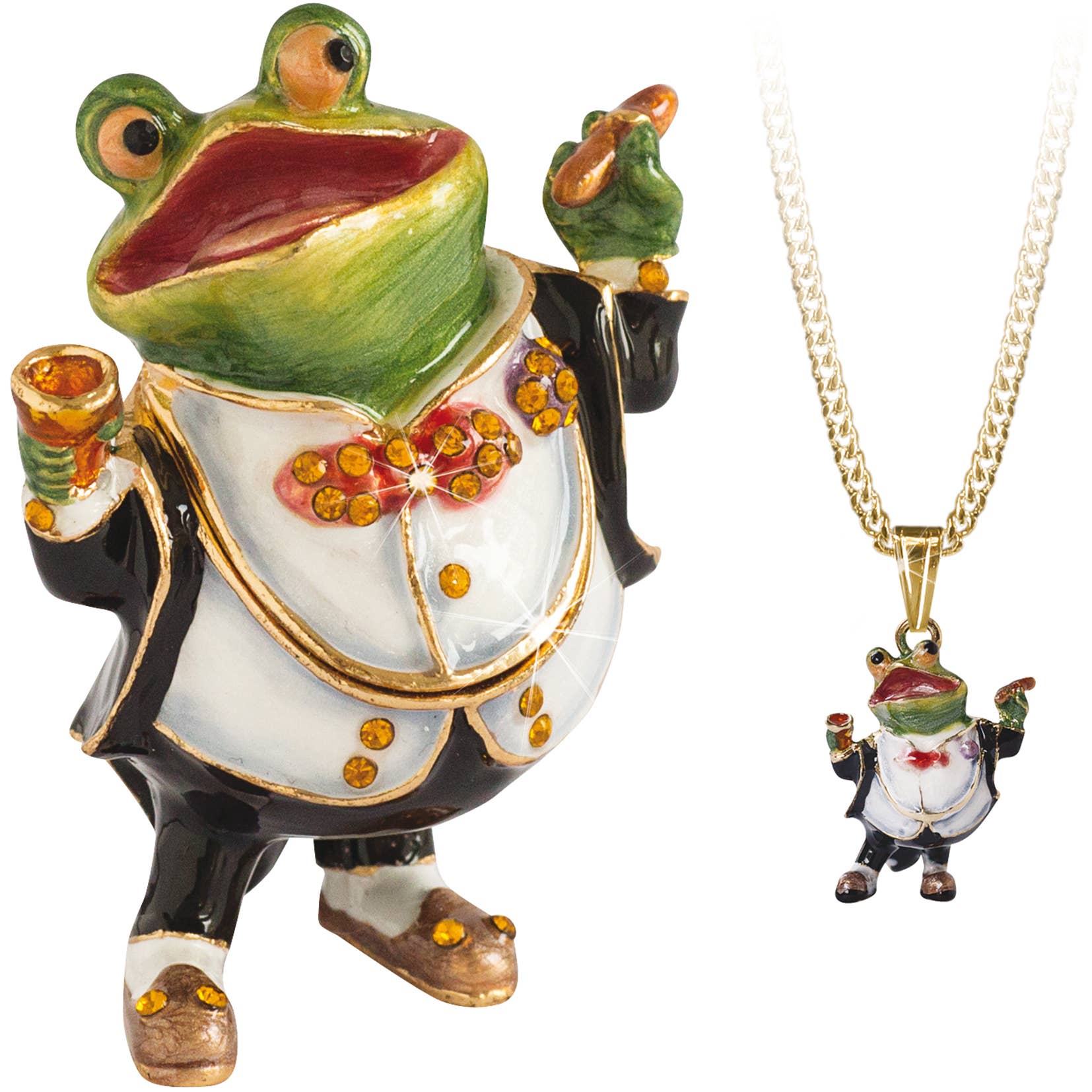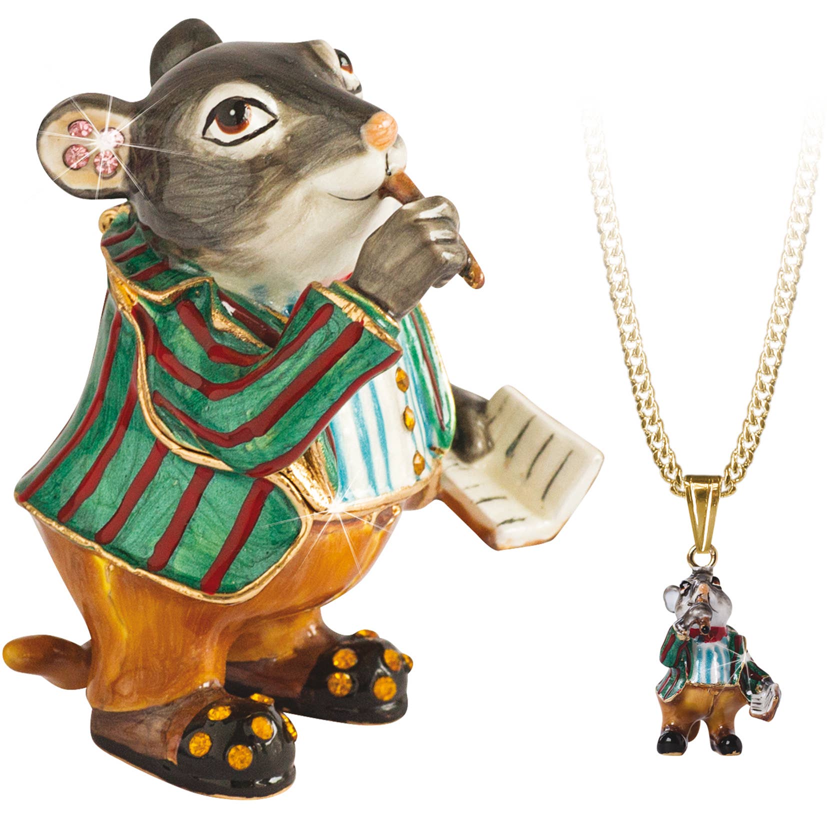 Geïnspireerd door de Wind in the Willows reconstrueert deze fantastische collectie deze beroemde personages getrouw. Dit is een prachtige snuisterijdoos met juwelen. Badger is met de hand gegoten in tin en vervolgens verguld. Individueel met de hand beschilderd met levendig gekleurd email. Alle snuisterijdoosjes bevatten een bijpassende halsketting en zijn verpakt in een geschenkverpakking. Hoogte 6 cm.