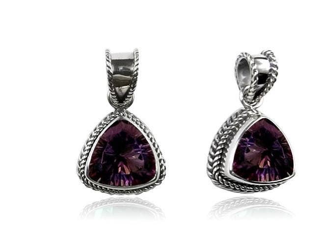 AP-6167-AM Amethistkwarts 925 Zilveren Hartvormige Bali Hanger Met Bloemendetails Voor Grote Sieradenbestellingen