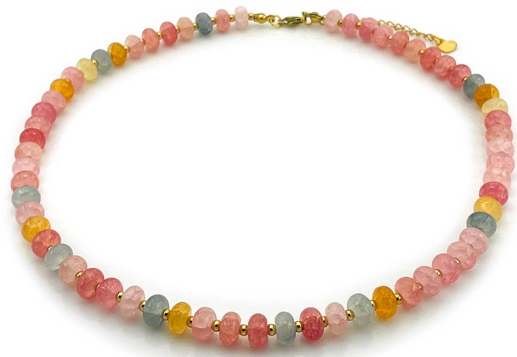 OFF TRACK WEDDEN - 24 INCH TURQUOISE EN ROZE KRISTALLEN HALS.