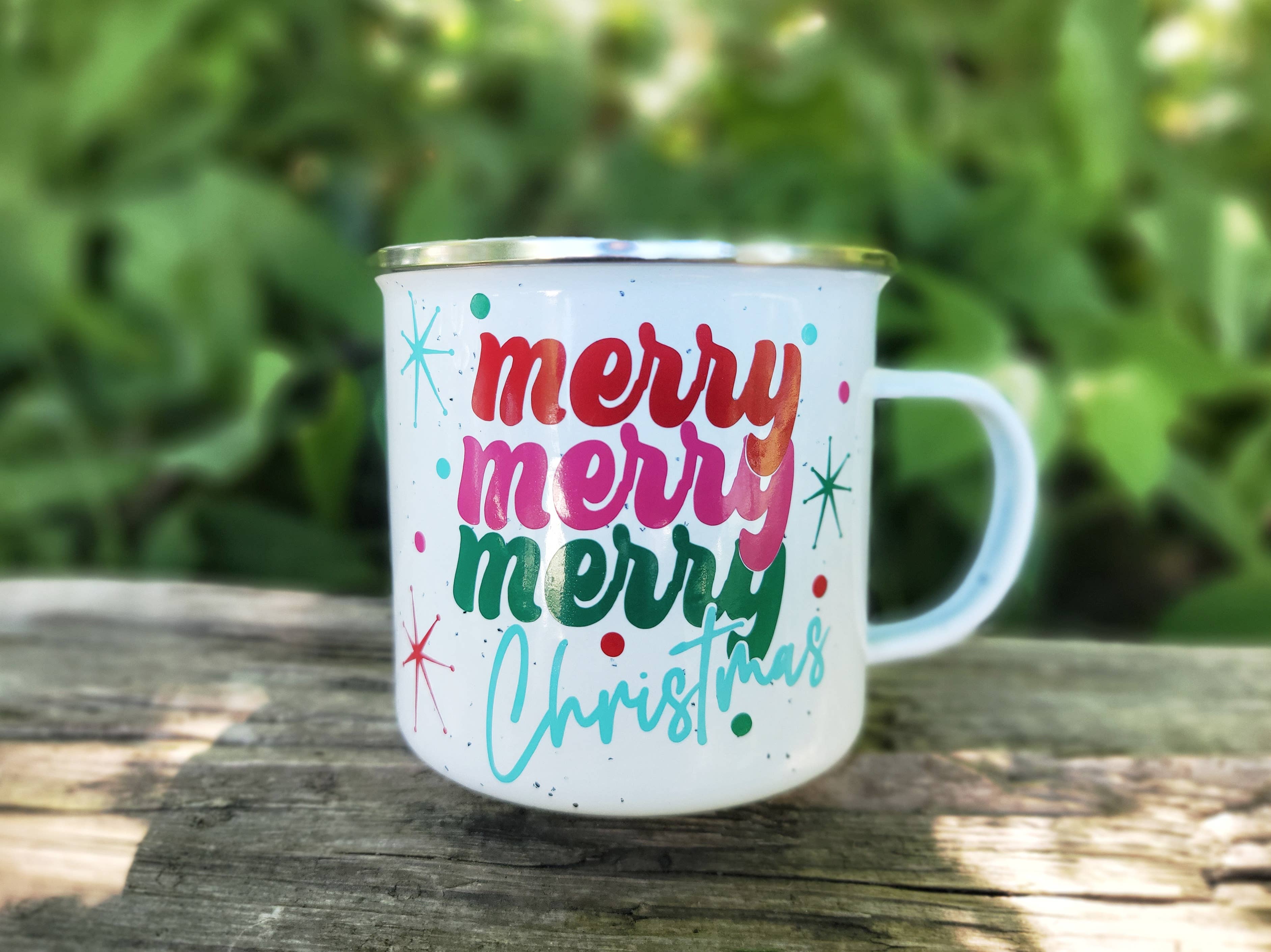 De feestdagen zijn aangebroken en deze Retro Merry Christmas-mok is klaar om je warme koffie, thee of cacao in te drinken. Deze kerstkampmok is de perfecte kousvuller, een cadeau voor een witte olifant, een afhaaltje voor de feestdagen voor een speciale collega of zelfs een cadeau voor jezelf! Deze geëmailleerde porseleinen mok van 16 oz heeft een roestvrijstalen rand en een rondom gespikkeld patroon. In het midden op de voorkant is een vinylsticker van hoge kwaliteit geplaatst, uitgesneden met mijn Silhouette Cameo. Speciale onderhoudsinstructies: -Alleen met de hand wassen -Niet laten weken -Niet vaatwasmachinebestendig -Niet magnetronbestendig *Elk item is handgemaakt door mij. Het artikel kan doorgaans binnen 1 tot 2 weken worden verzonden