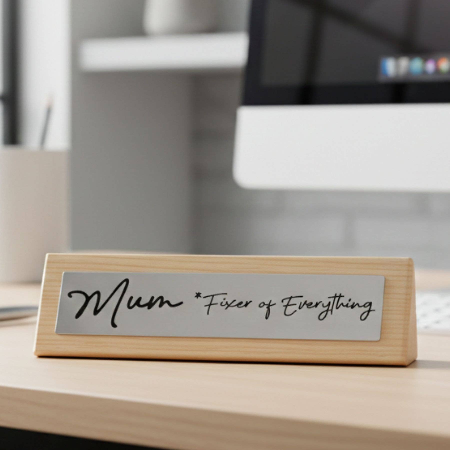 Op zoek naar een bureauinrichting? Elk bord is gemaakt met een stevige aluminium basis en premium acryl naamplaatje. Ontworpen en vervaardigd in Pennsylvania. 2" x 4".