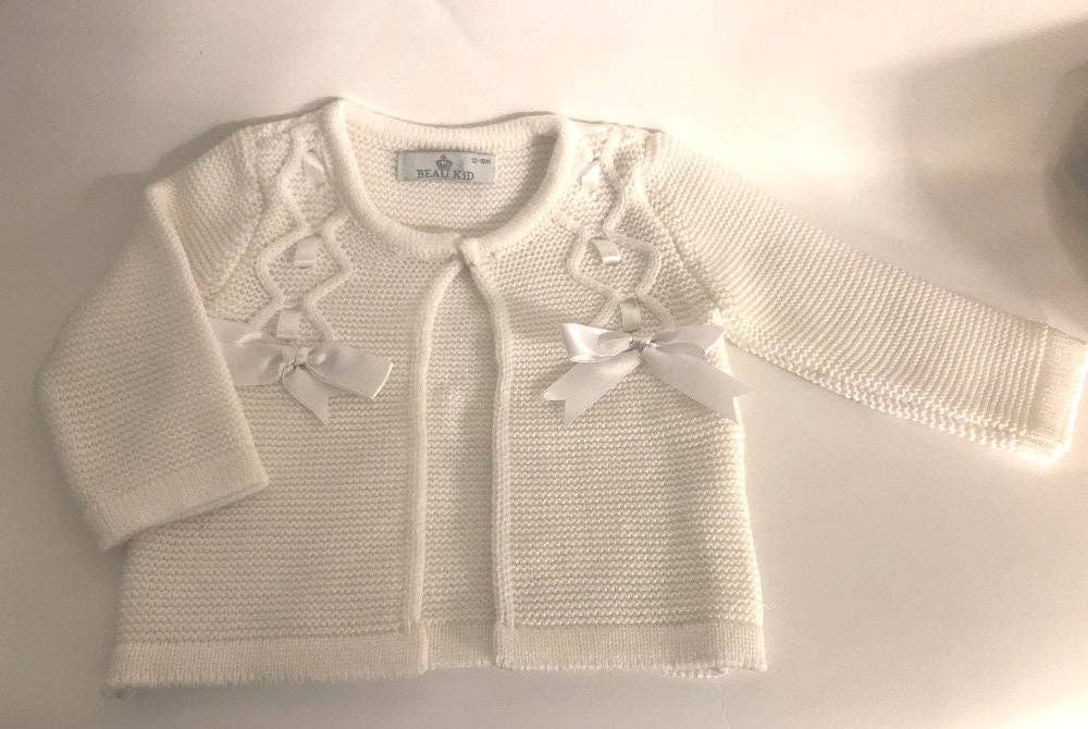 Meisjescardigan met een ruches aan de hals, knopen aan de voorkant en een strikdetail voor een schattige afwerking.