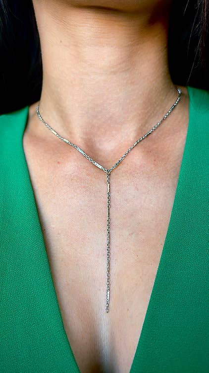 Grote jaseron mesh ketting met een grote schuine of middelgrote H-balk van 2,4 cm. De lengte is aan te passen door de ketting in de H te schuiven. Lengte 70 cm.