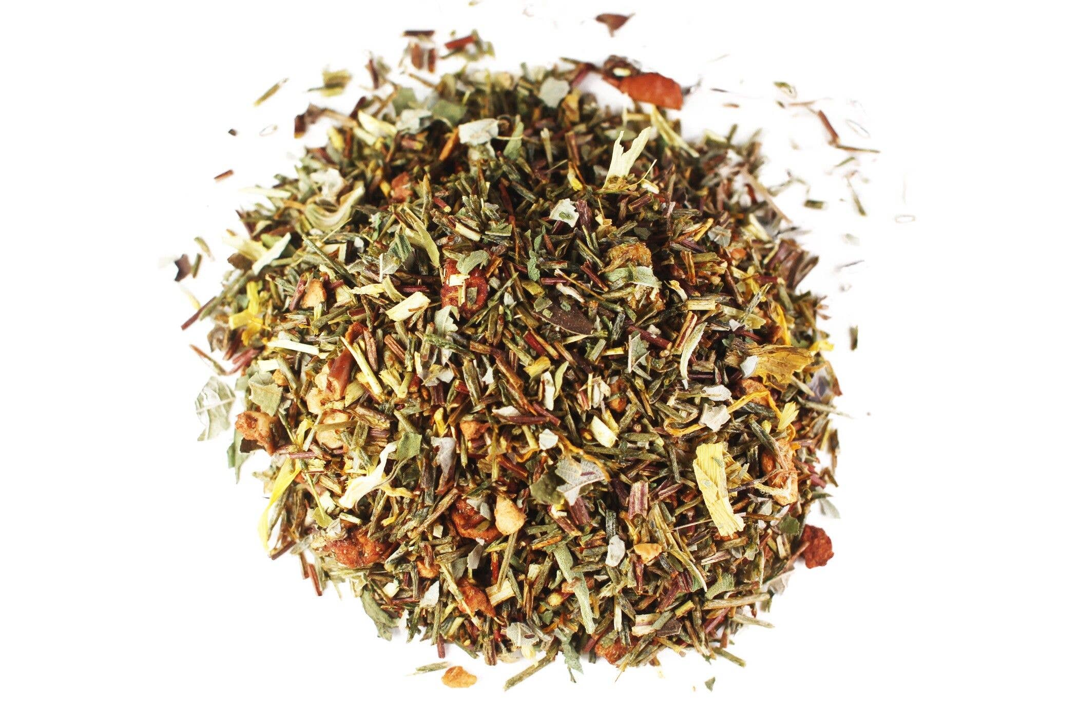 Deze kenmerkende mix van jade oolong, citroengras en gember is gemaakt met het oog op wellness. Het citroengras is verfrissend, de gember revitaliseert en de jade oolong voegt een delicaat vleugje cafeïne toe. Laat 3-5 minuten op 195 graden trekken. Elke 2 oz thee kan 20 kopjes brouwen.